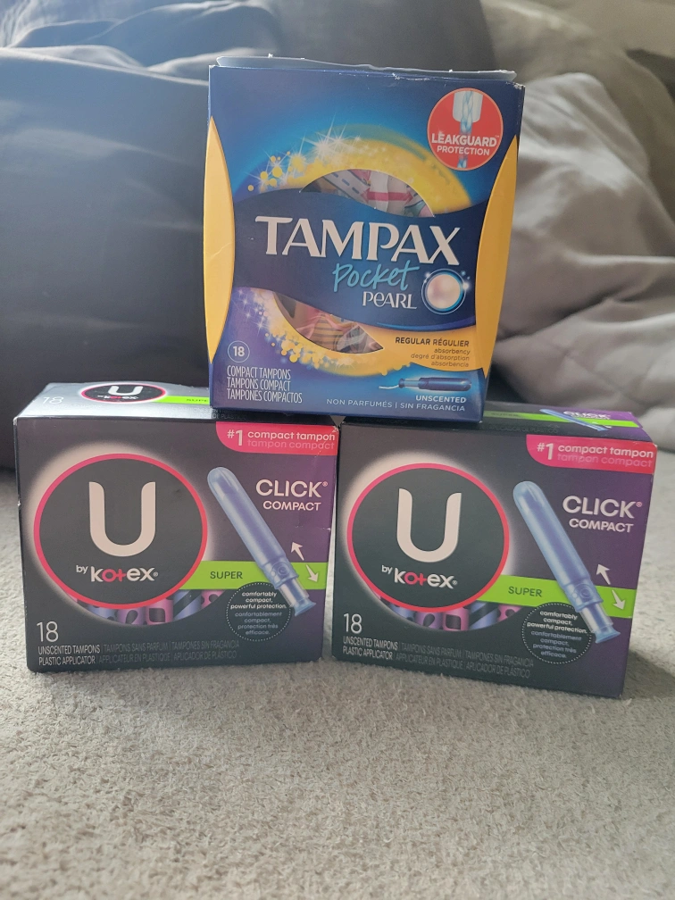 I am selling all 3 boxes together. Tampax ones are regular. U by Kotex are both super.