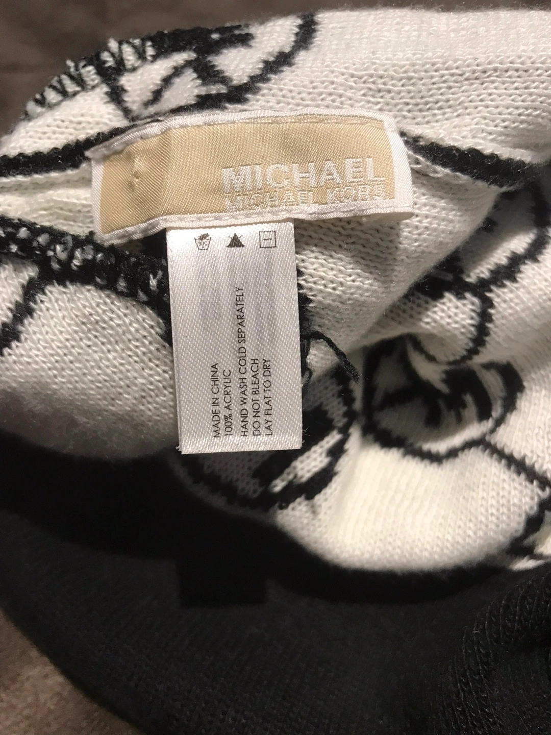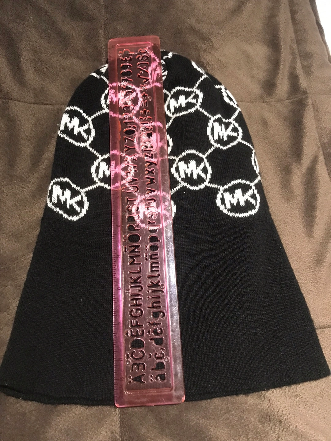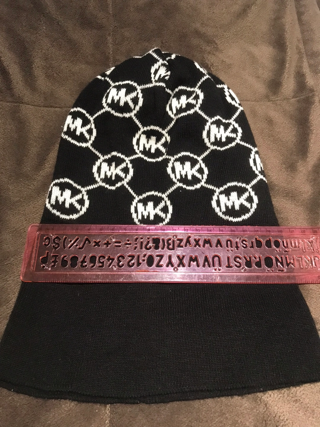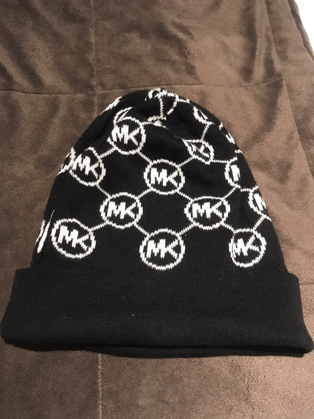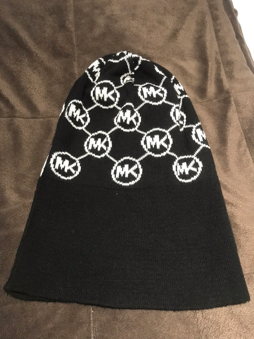 Black beanie with white MK logo pattern. 30cm H x 20cm W. Carefully and gently used for few times. #decluterring