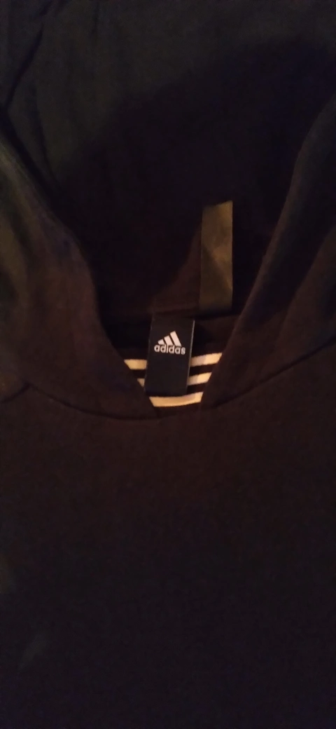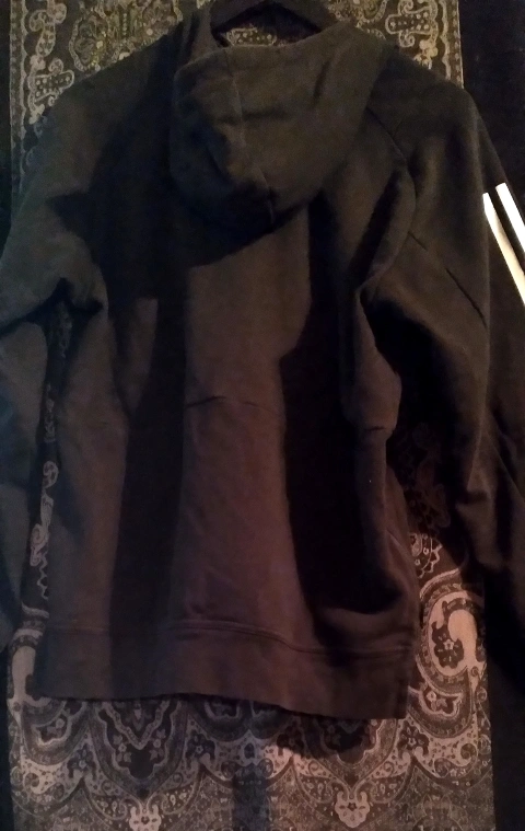 ADIDAS HOODIE - SIZE SMALL - BLACK W/ WHITE STRIPES & ADIDAS LOGO ON ONE SLEEVE. FRONT POCKETS - HALF ZIPPER FEATURE ON EACH LOWER SIDE - 70% COTTON/ 30% POLYESTER. LAUNDERED AND FOLDED. NOT PRESSED OR DRY-CLEANED. CASH AND PICK-UP ONLY. QUEEN ST EAST AND BROADVIEW. RIVERSIDE.
