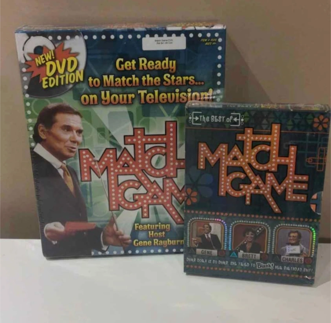 Both sealed, this is a great lot of two Match Game items from the 1970s game show hosted by Gene Rayburn. 1. The Match Game boardgame with DVD 2. The Best of the Match Game DVD box set! Must have for Match Game or nostalgia fans and hours of fun from the likes of Betty White, Richard Dawson, & Charles Nelson Reilly! Pickup Keele and Dundas West area.