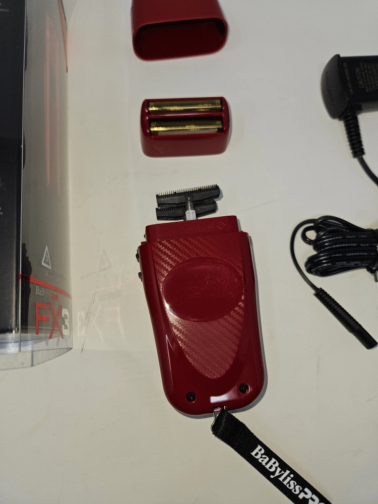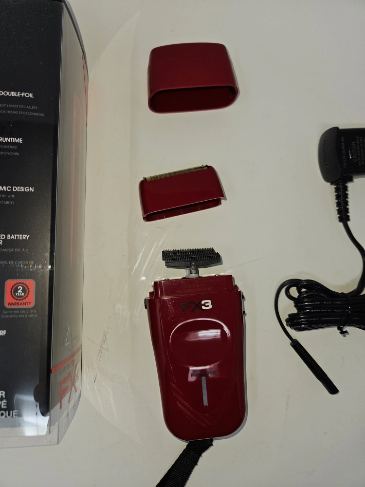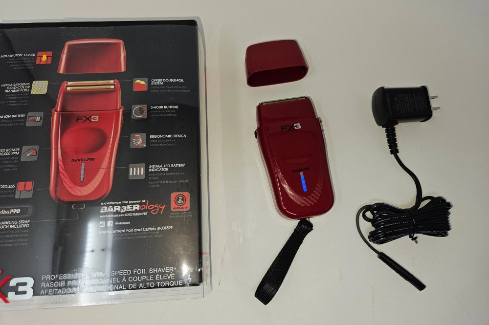 Red electric shaver. Includes charger, cleaning brush, and carrying case. Pick up only ( St Clair West Station)
