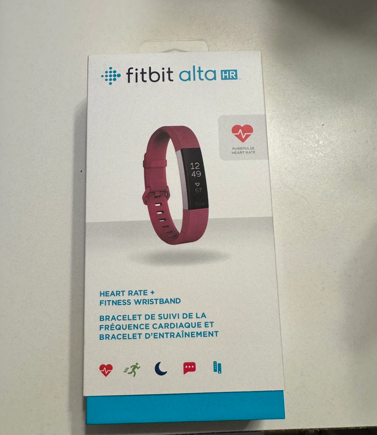 Fitbit Alta HR fitness tracker in pink. Comes with charging cable. Unbeatable price, don’t wait.