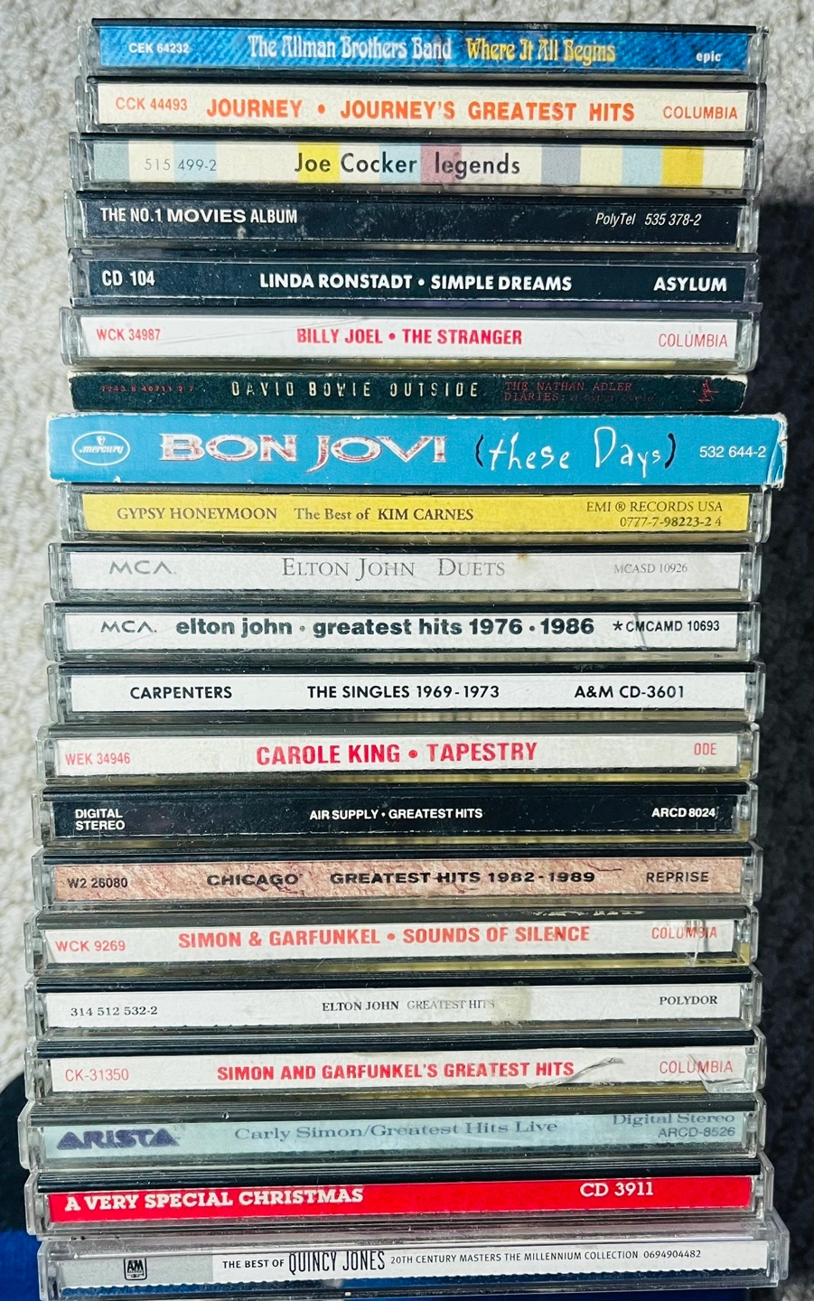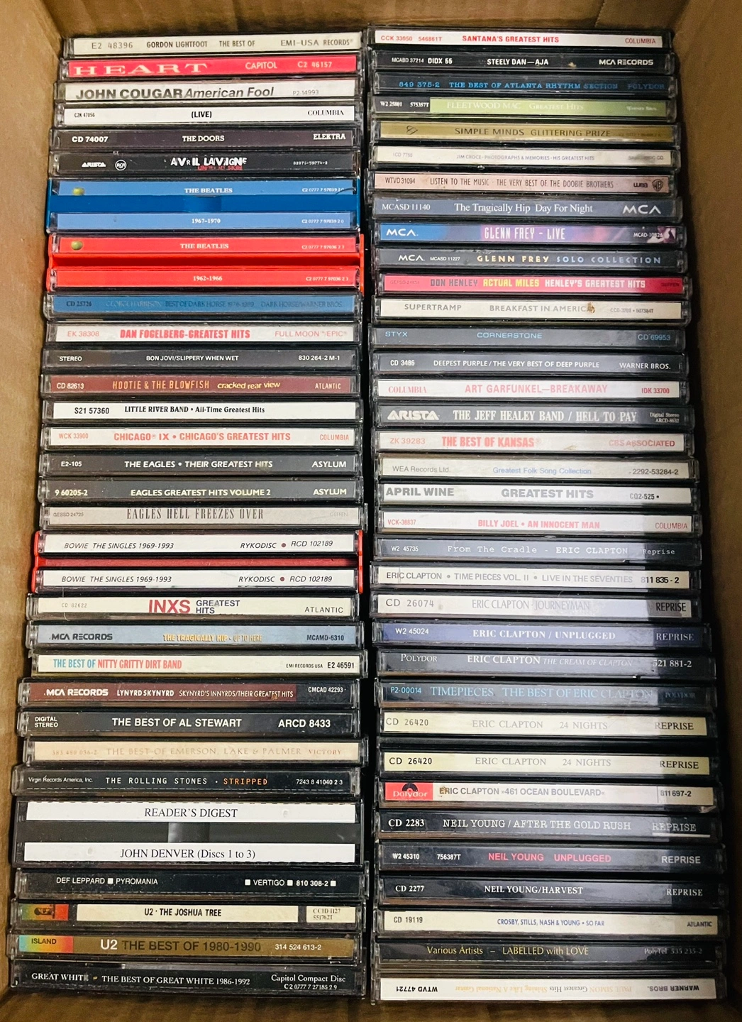 A large collection of music CDs, all in cases. Many different artists and genres. Single cd $ 6 double cd $ 8 Eagles- sold