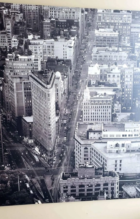 Beautiful black and white canvas wall art of Manhattan, New York, city scape featuring the Flat Iron Building. Great condition with no rips or stains. Extra large print measuring approximately 80" by 55" (200 cm x 140 cm).