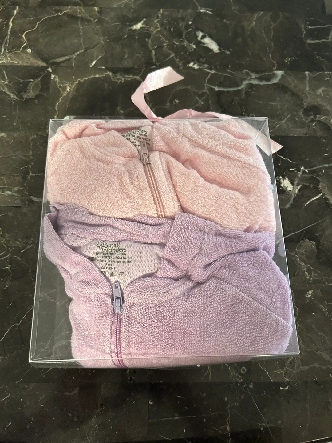 Four baby sleepers 2 pink ones, a purple, and a yellow size Small, 14 lbs. 3 months.
