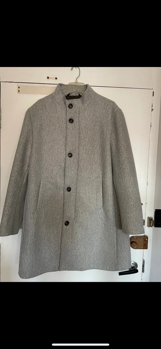 Grey wool coat with black buttons. Size XXL. Made in Portugal. Fits like L-XL. Never worn. You can pick up by Carlton and Jarvis area Serious enquiries only please. Too many people wasting my time and low balling and not following up.