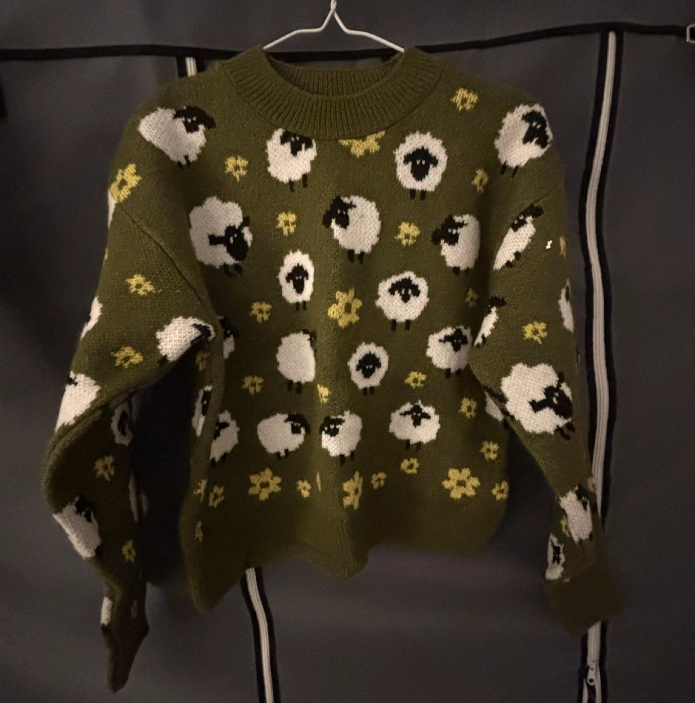 Never worn❗️ Green sweater with sheep and flowers. Long sleeves, crew neck.