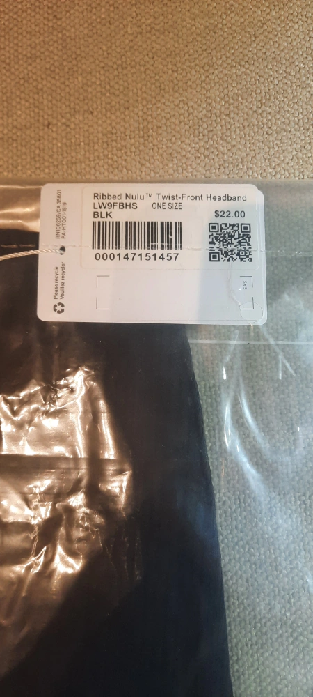 Black headband. Never worn, brand new with tags. It's meant for working out.. not for minus 20 weather. Retails for $22+ from Lulu looking for about half of that. https://shop.lululemon.com/en-ca/p/hair-accessories/W-Ribbed-Nulu-Twist-Front-Headband/_/prod11400087?cid=Google_DSA_CA_NAT_EN_X_Hybrid_Accessories_ONLINE_GEN_Y22_ag-DSA_G_CA_EN_DM_X_GEN_NO_Accessories&color=0001&gad_source=1&gclid=Cj0KCQiAvvO7BhC-ARIsAGFyToUmla7uSvgK0XiT_5LIskWF5PrsJkeU8GQYyRCDyxdz4Bj83ZGgbOEaAn-REALw_wcB&gclsrc=aw.ds&sz=ONESIZE
