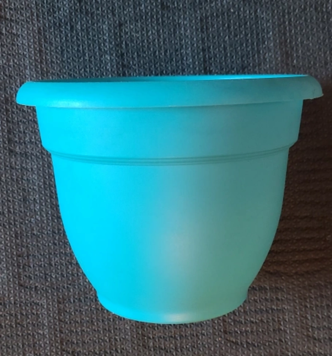 Teal coloured plastic plant pot. Approximately 15cm diameter. Great for small plants or succulents. pick up only
