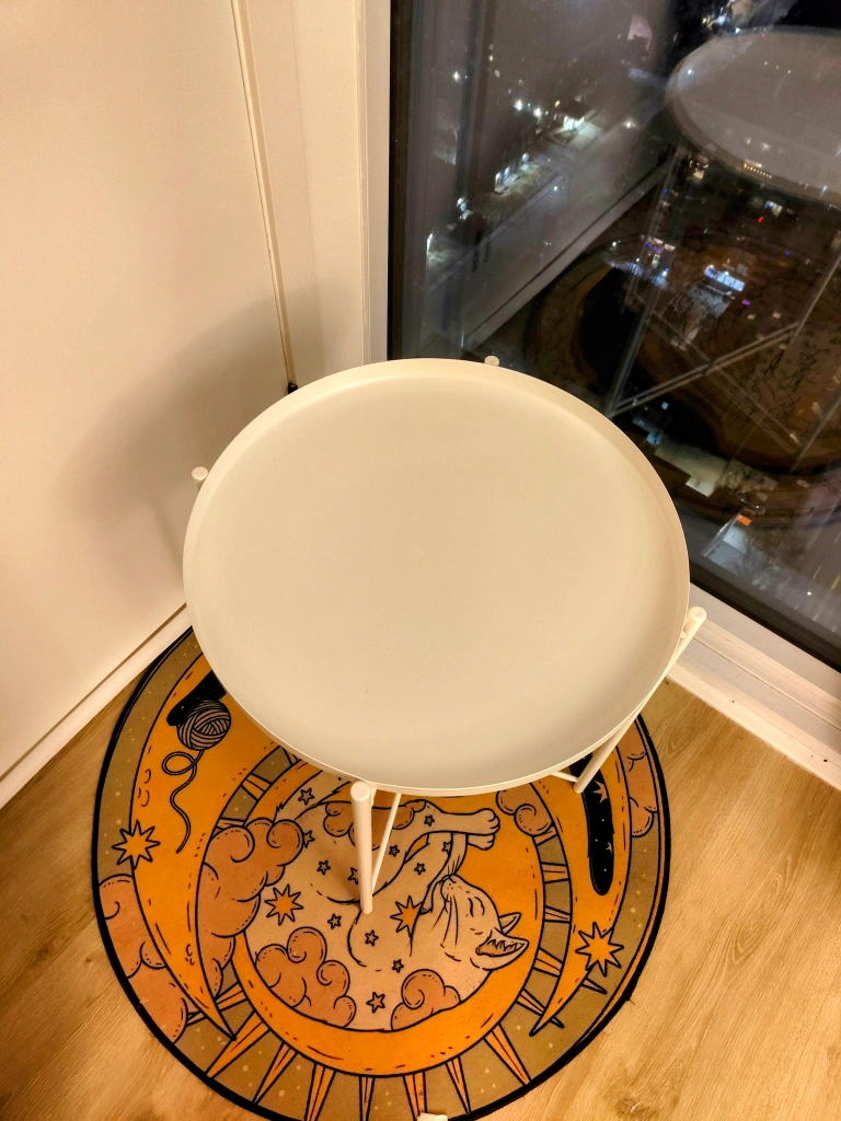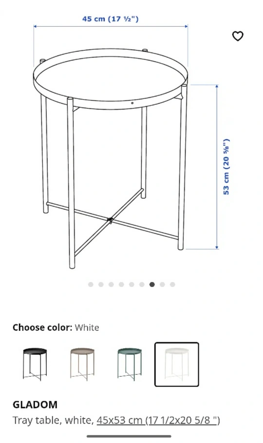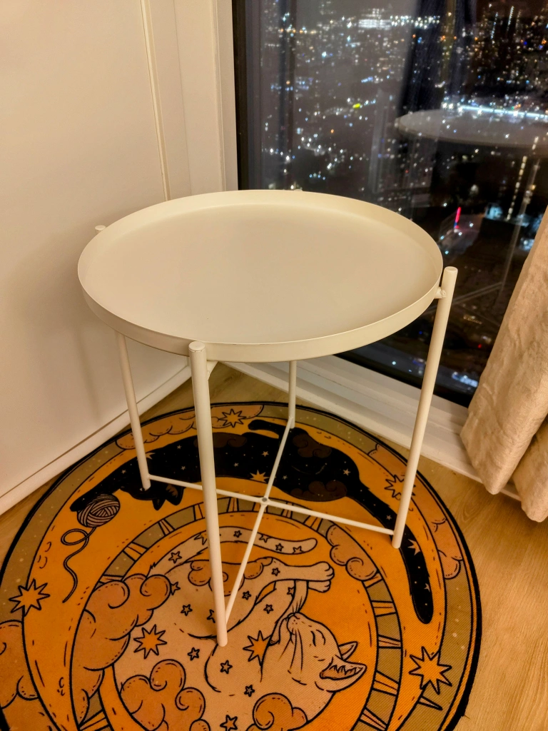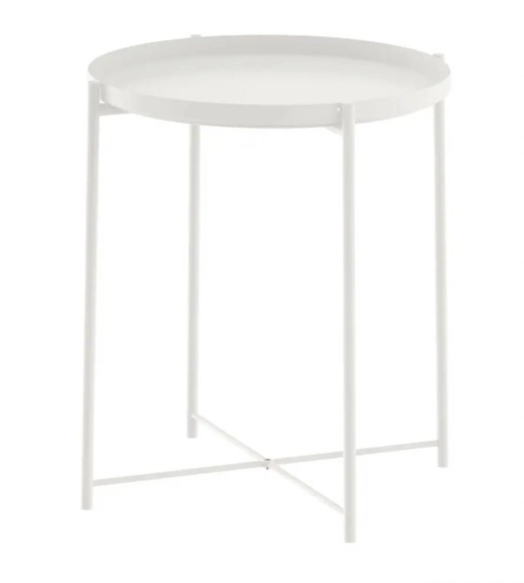 IKEA White metal tray table. Round top, simple design. Small, perfect for a side table. Just as new. Very lightly used. It's super aesthetic, light weight and comfortable to use. pickup near Gerrard and Jarvis st.