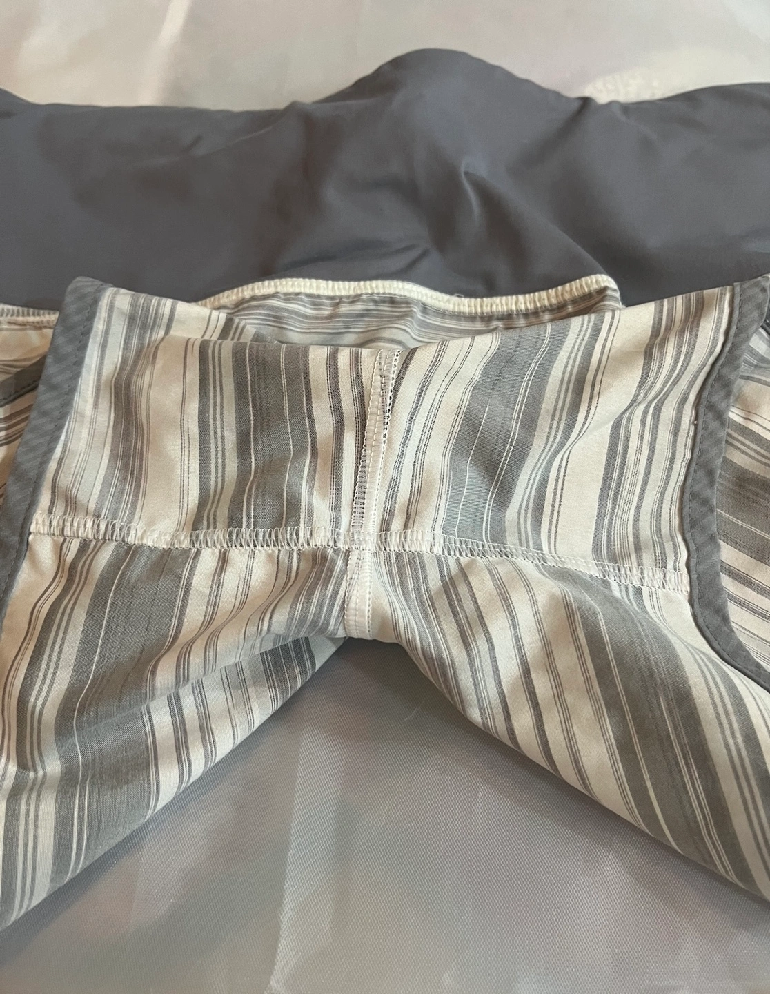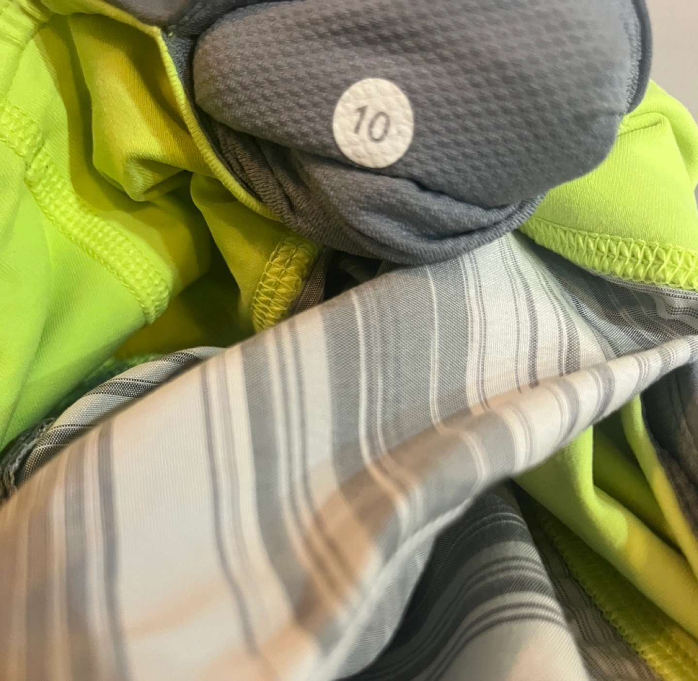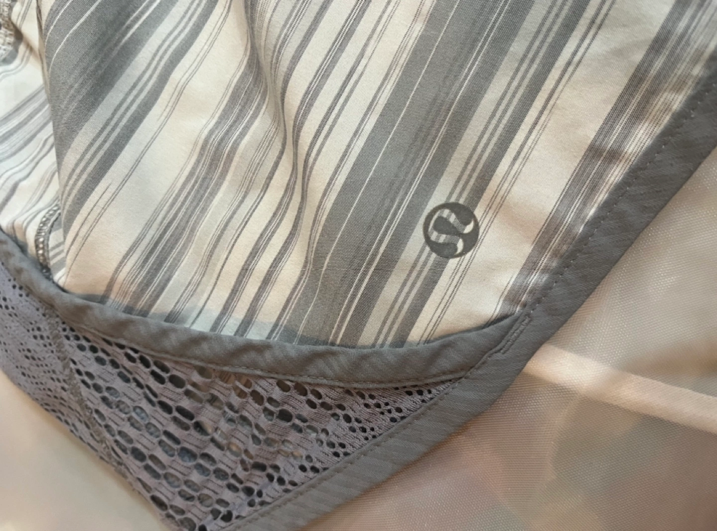Women's athletic running shorts. Grey and white striped pattern. Mesh side panels for breathability. Zip pocket. Excellent for workouts. Excellent condition! Pickup Brampton or downtown Toronto Check all pictures for details Will add measurements asap! Description from website Why we made this: Shedding layers when the heat is high feels incredible, but going bottomless can make things a little awkward. We designed these lightweight run shorts with mesh venting up the sides to help keep us cool and breezy when we're sprinting in the sunshine. Rated PG. Key features • mesh panels keep your hot legs cool • three pockets thoughtfully designed to fit all your essentials • the smooth Luxtreme waistband wicks away sweat and won't dig in • cinch the continuous drawcord for a secure fit at the waist • chafe-resistant flat seams help reduce skin irritation Tech specs • designed for: run • fabric(s): Swift, Luxtreme • properties: moisture wicking, chate-resistant, two-way stretch, breathable, preshrunk • rise: high • inseam: 4" • hem sweep: 25 3/4" • liner: no
