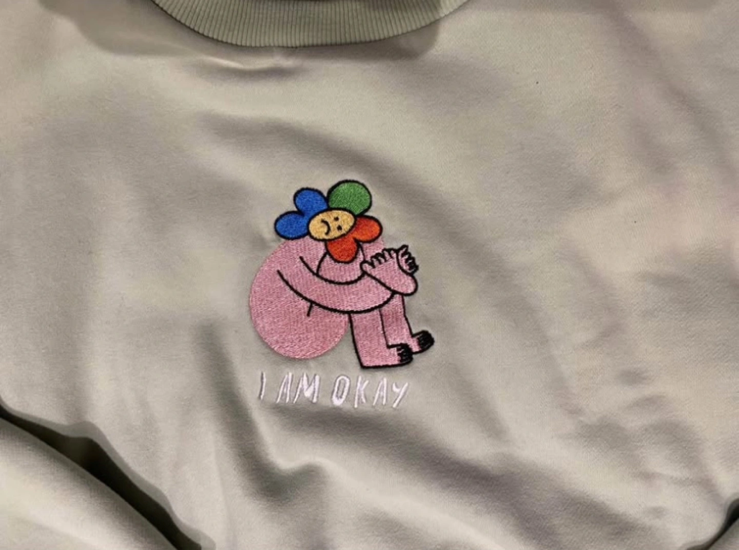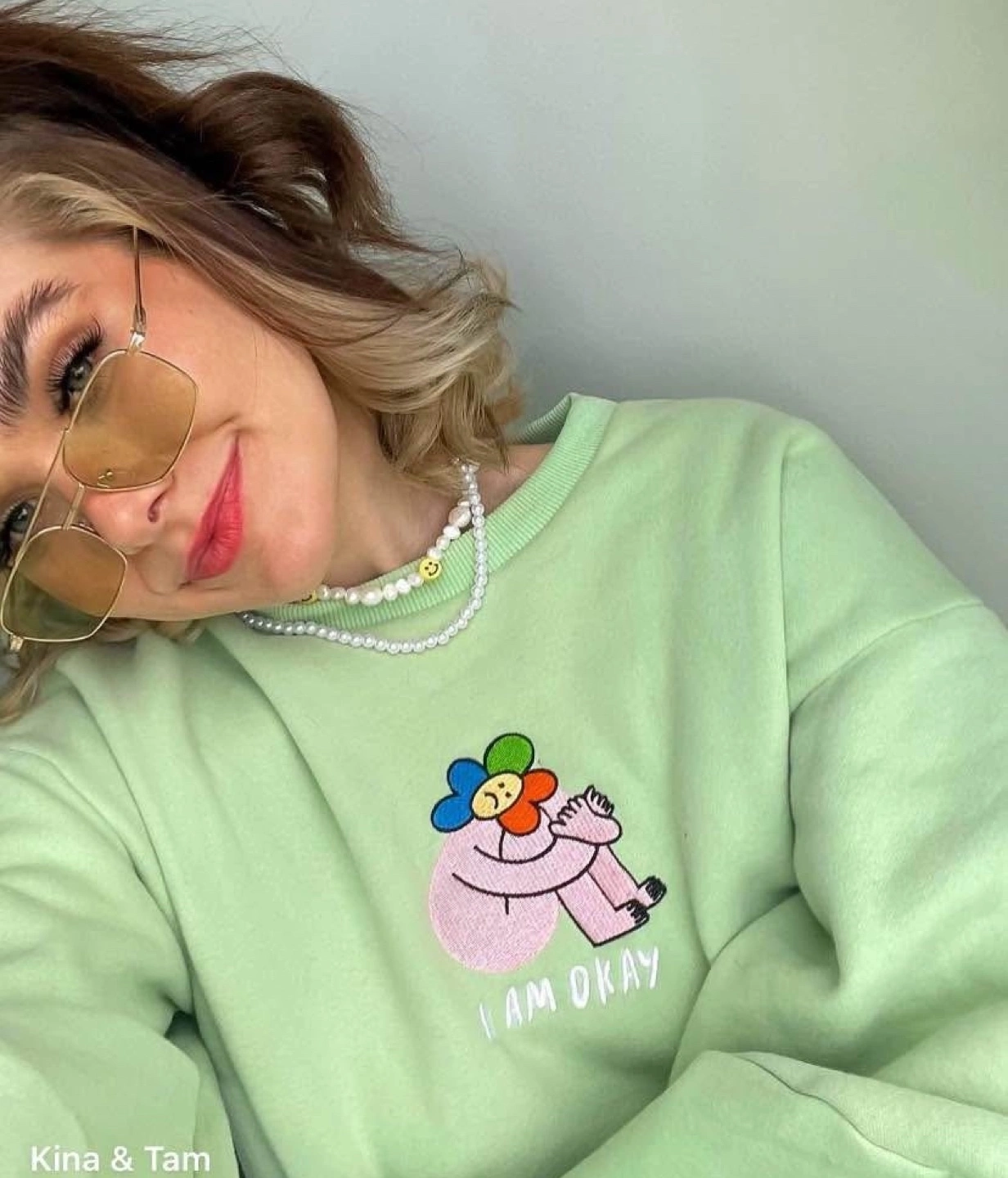 Cute light green crewneck sweatshirt. Features embroidered graphic. Joyful and perfect condition.