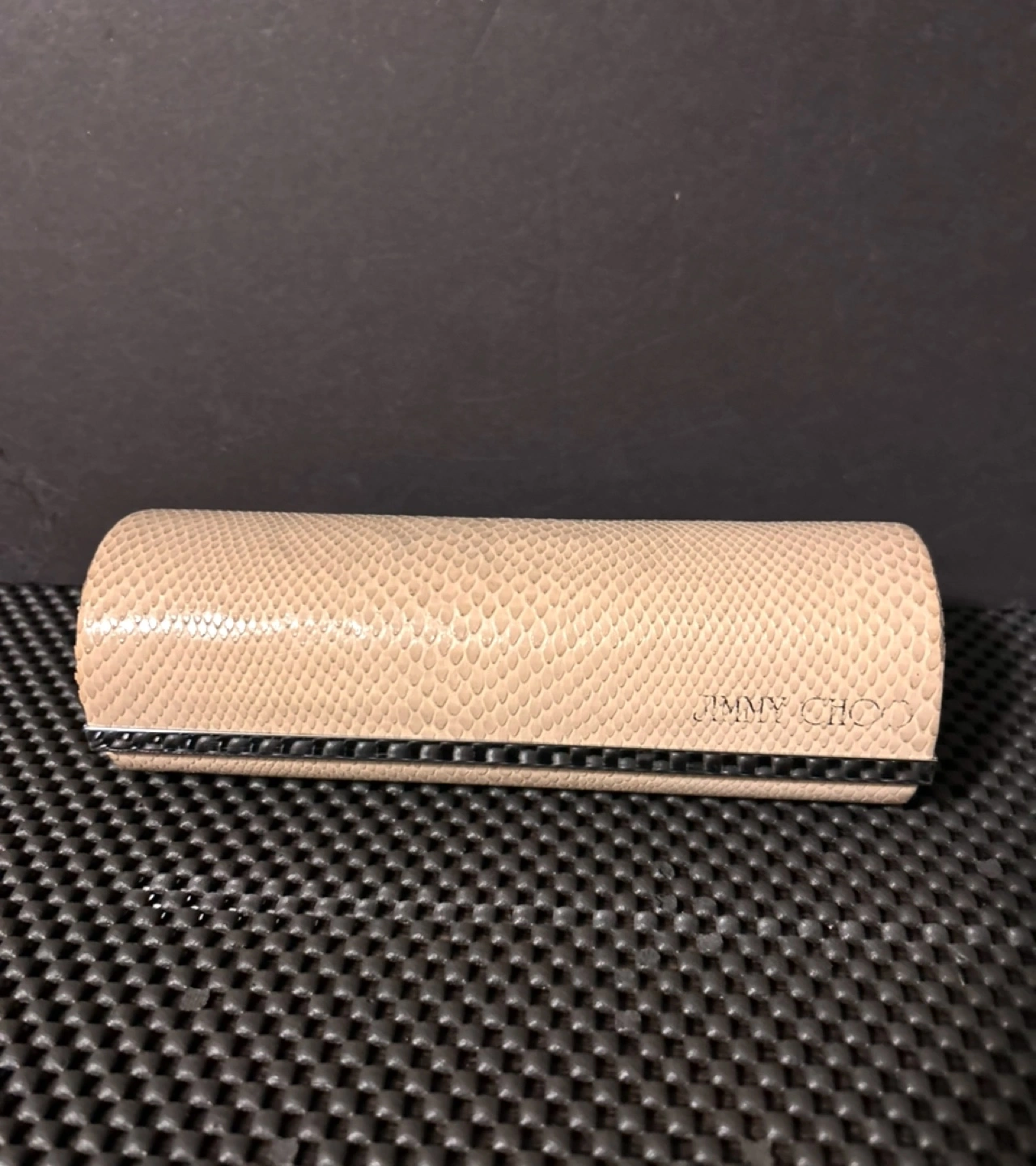 Jimmy Choo Pale beige snakeskin-textured eyewear case $5 Hard shell. Silver-toned accents. Very good condition Pickup near wonderland
