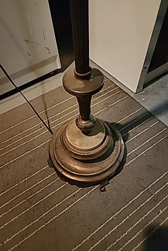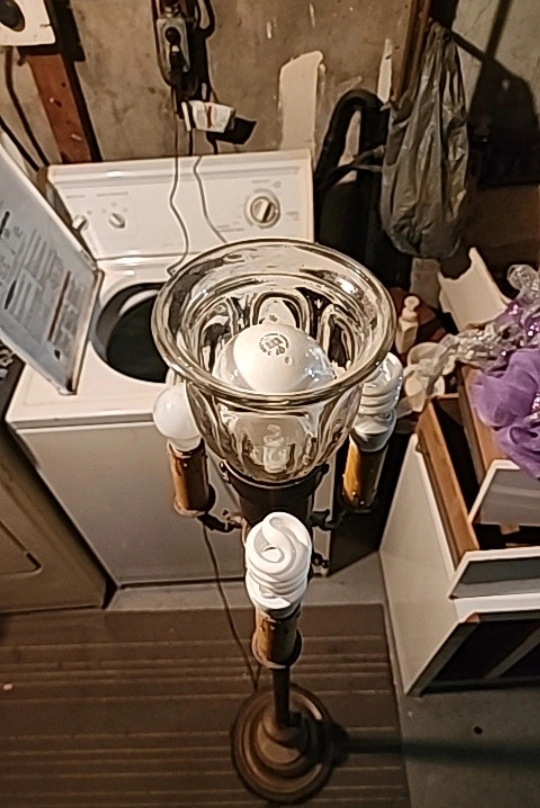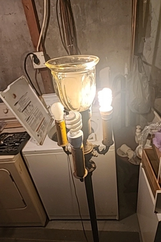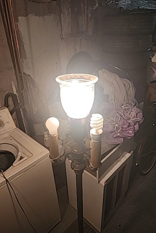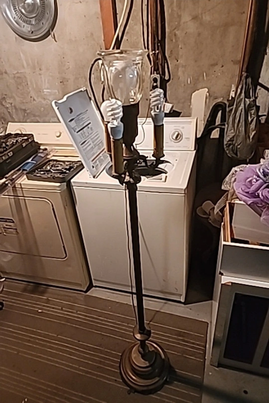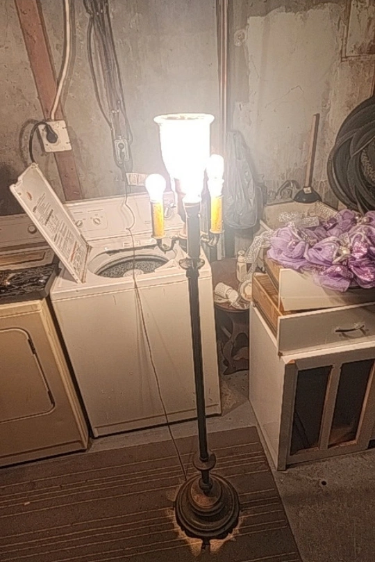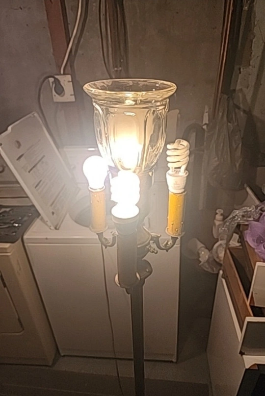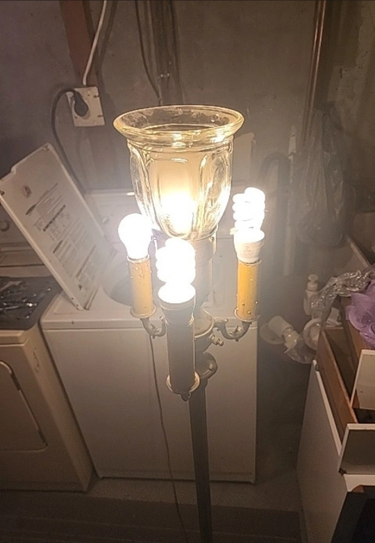 Antique styled lamp. Heavy and sturdy. Features 5 light bulbs all activated differently. All lights function. Biggest light bulb is a 3 click for dull to bright light. Will include the big bulb and the small one underneath the base. Lamp stands at 62" tall lights are 8.5" around and base is 11" across. Asking $150 obo very unique light.