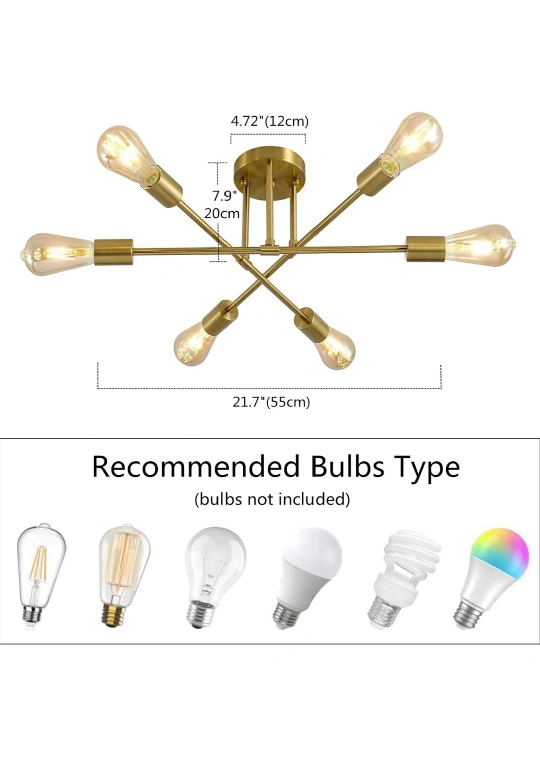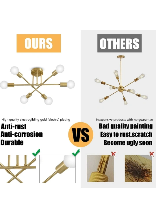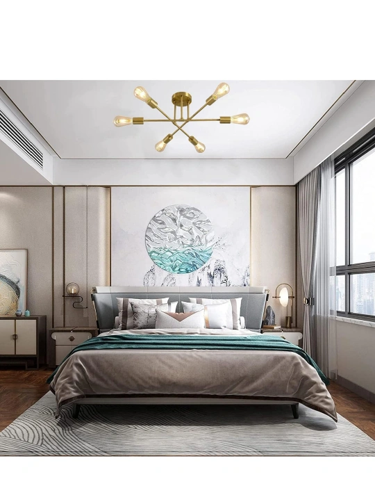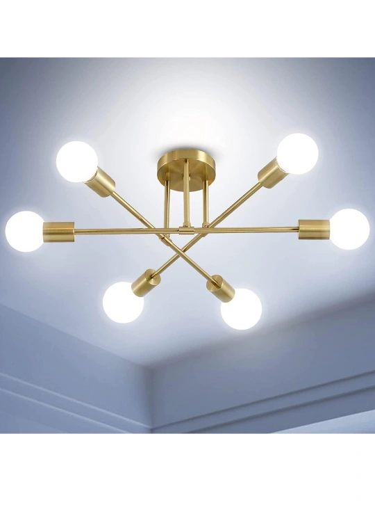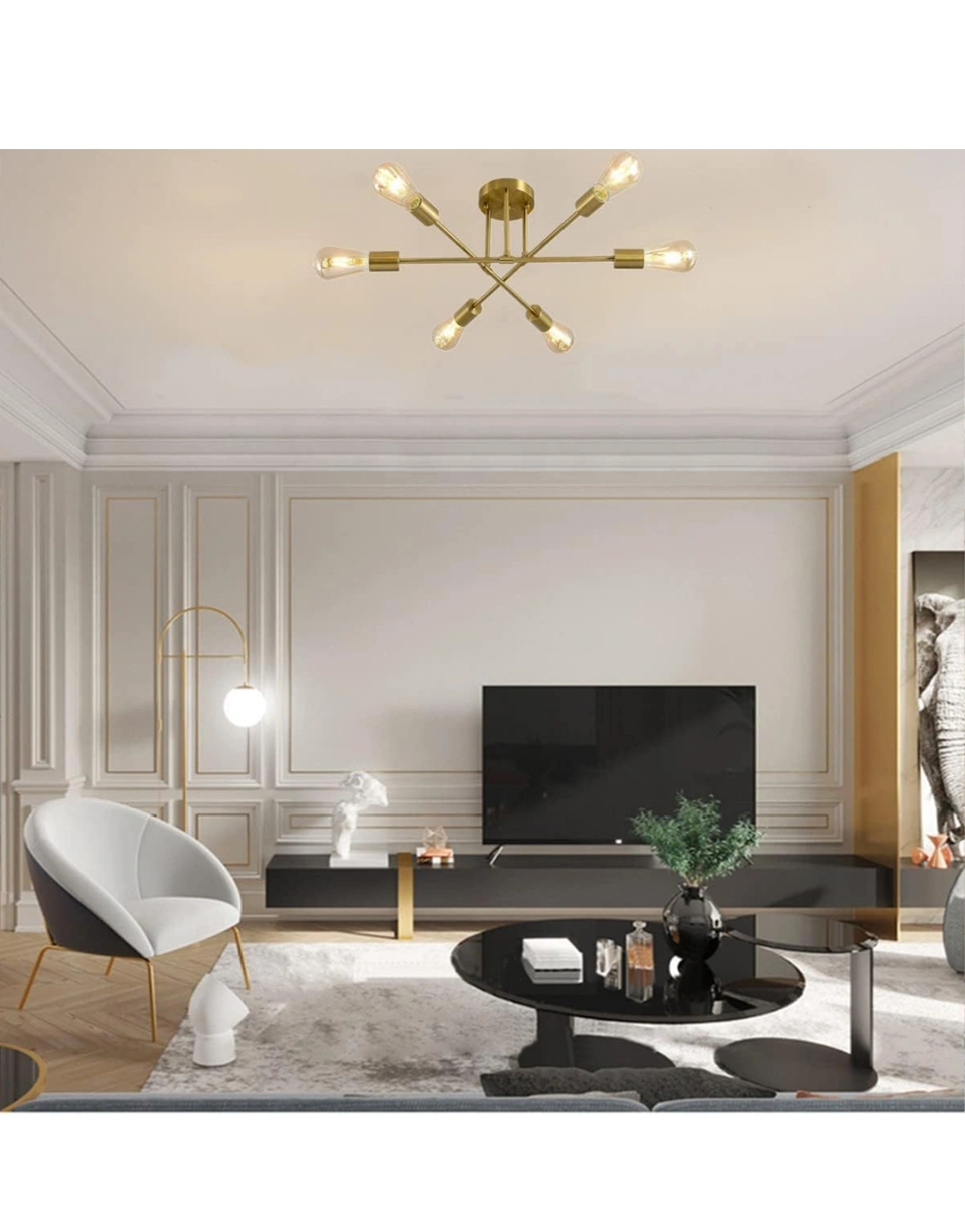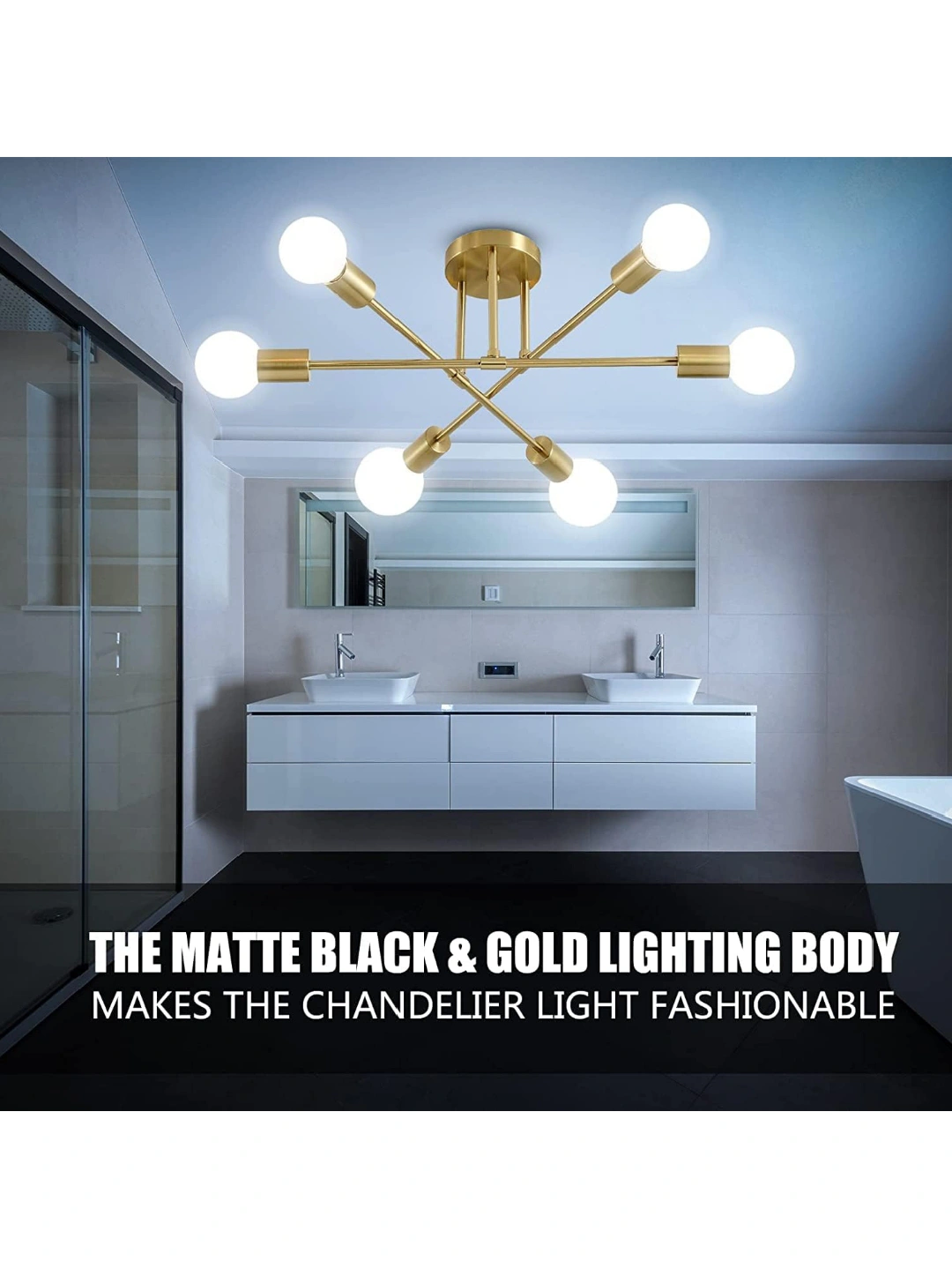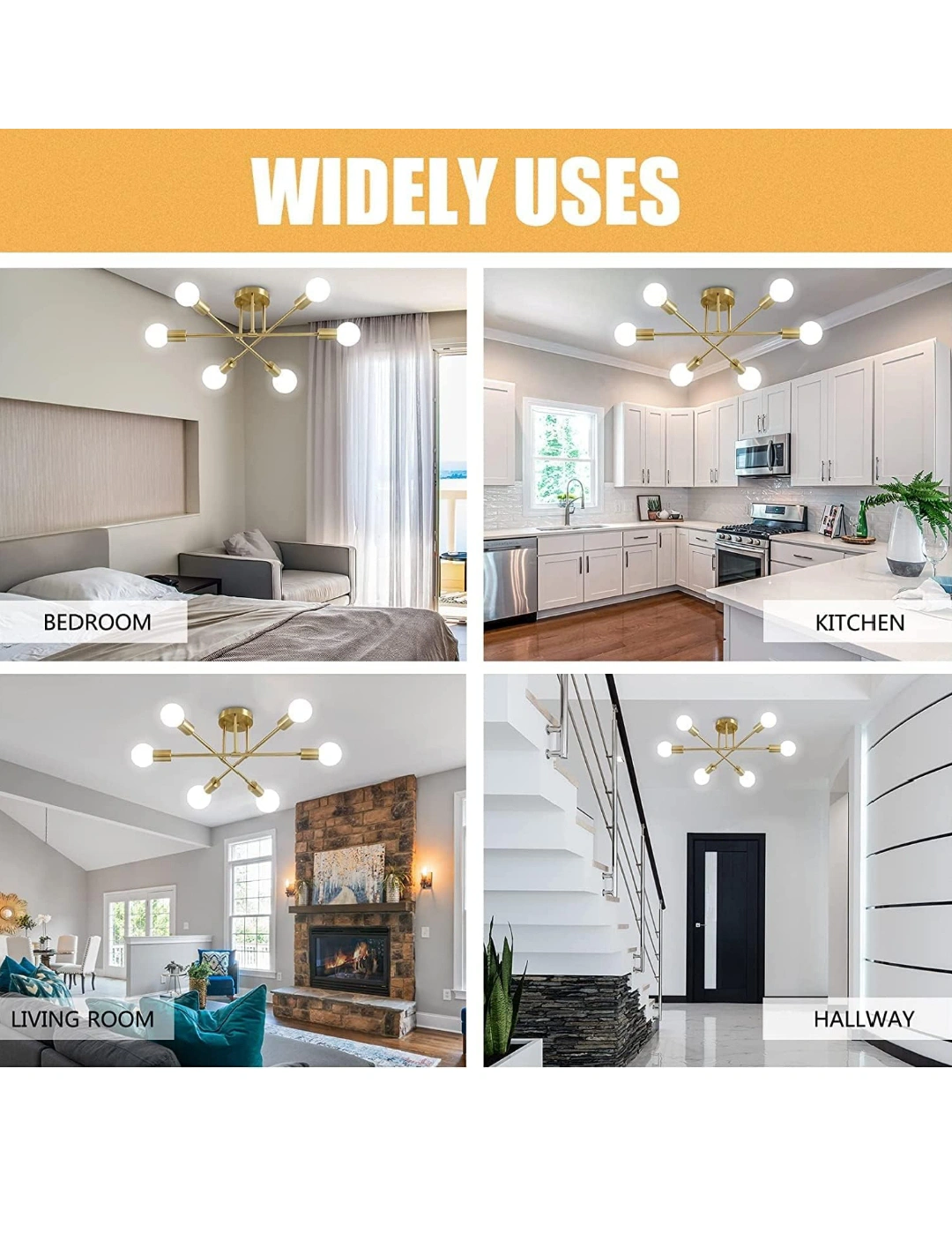 CICIKEY Sputnik Ceiling Light, Modern Bedroom Chandelier, 6 Light Semi Flush Mount Ceiling Lighting Fixtures for Kitchen Living Room Dining Room Hallway (Gold).