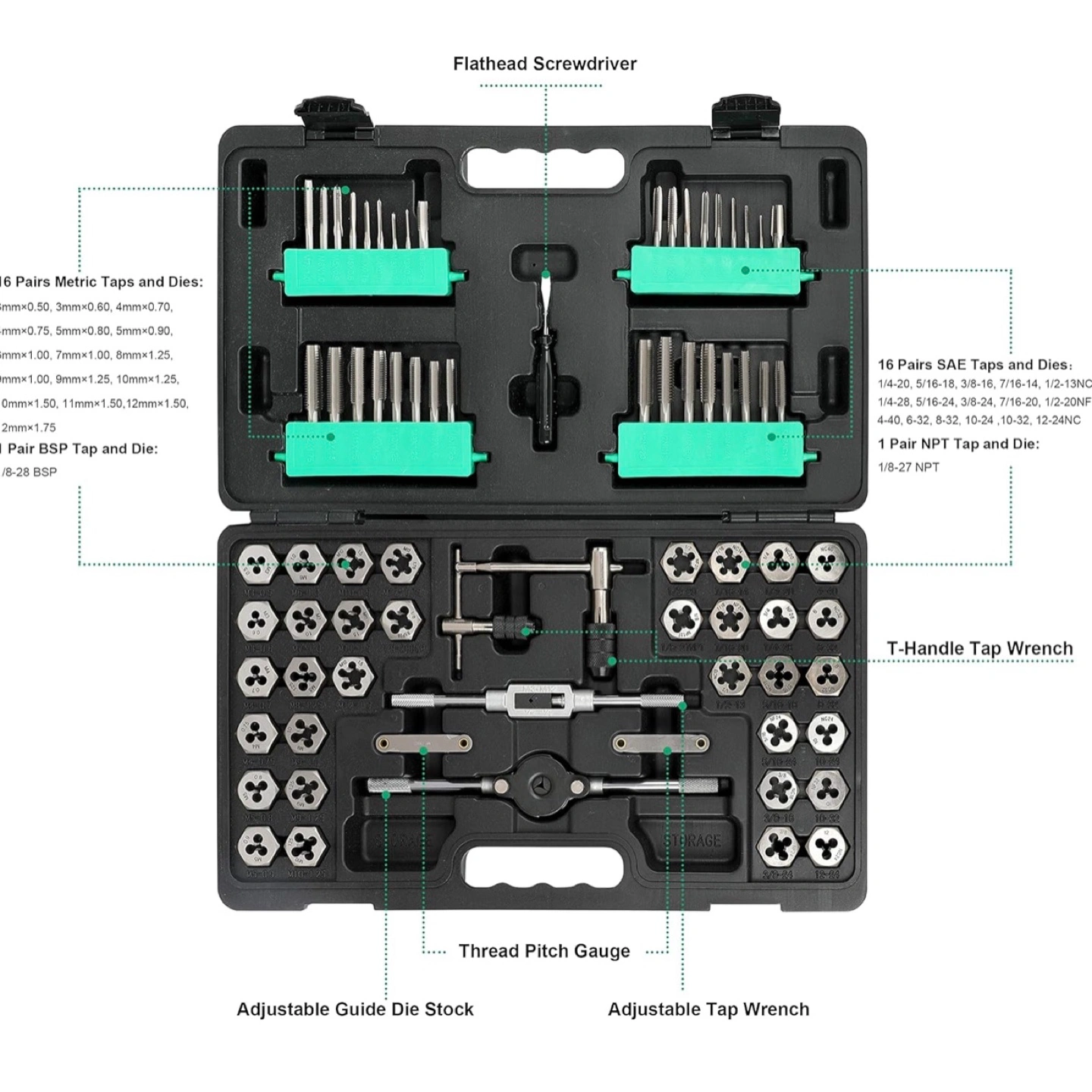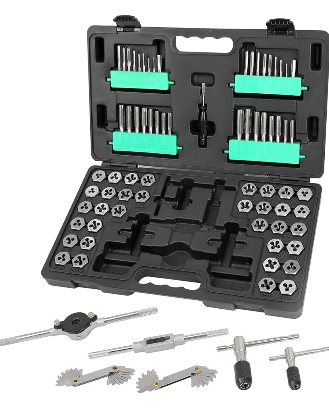 Amazon Brand - Denali 75-Piece Drill and Tap Set, SAE/Metric ❤️ barand new in box ❤️ For more information, please copy the title to google ☺️ No meet,No delivery ,house Pick up only by Coquitlam. Thanks 😊 Cash only price firm ,💡 Not reply for lowball !! still up means available. First come, first serve.No Hold !!! No return or exchange for non defective item。 Tap and drill set; ideal for quick, easy thread cutting and hole making Includes a 75 piece set with 7 drive tools with accessories, 17 inch plug taps, 17 inch hex dies, 17 metric plug taps, 17 metric hex dies & sturdy storage case. Hardened, precision ground and polished surfaces with a rust resistant satin finish ensure long lasting strength Product dimensions: 16.92x10.23x2.75 inches(LxWxH, Carry Case)