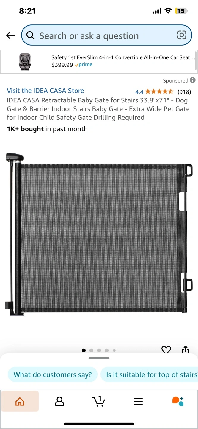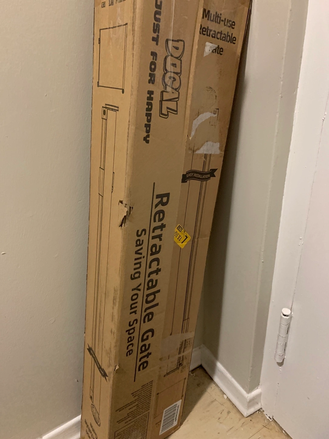 Retractable baby gate. Extra wide. For stairs and indoor use. Easy installation. Saves space. Keep your pets and kids safe! In grey!