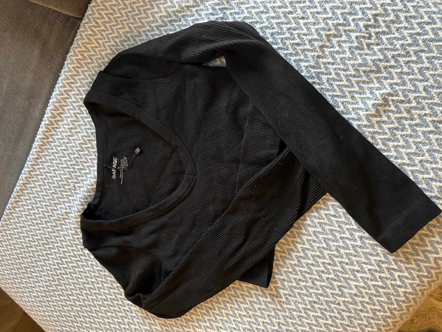 Black ribbed long sleeve crop top. V-neck. Size M.