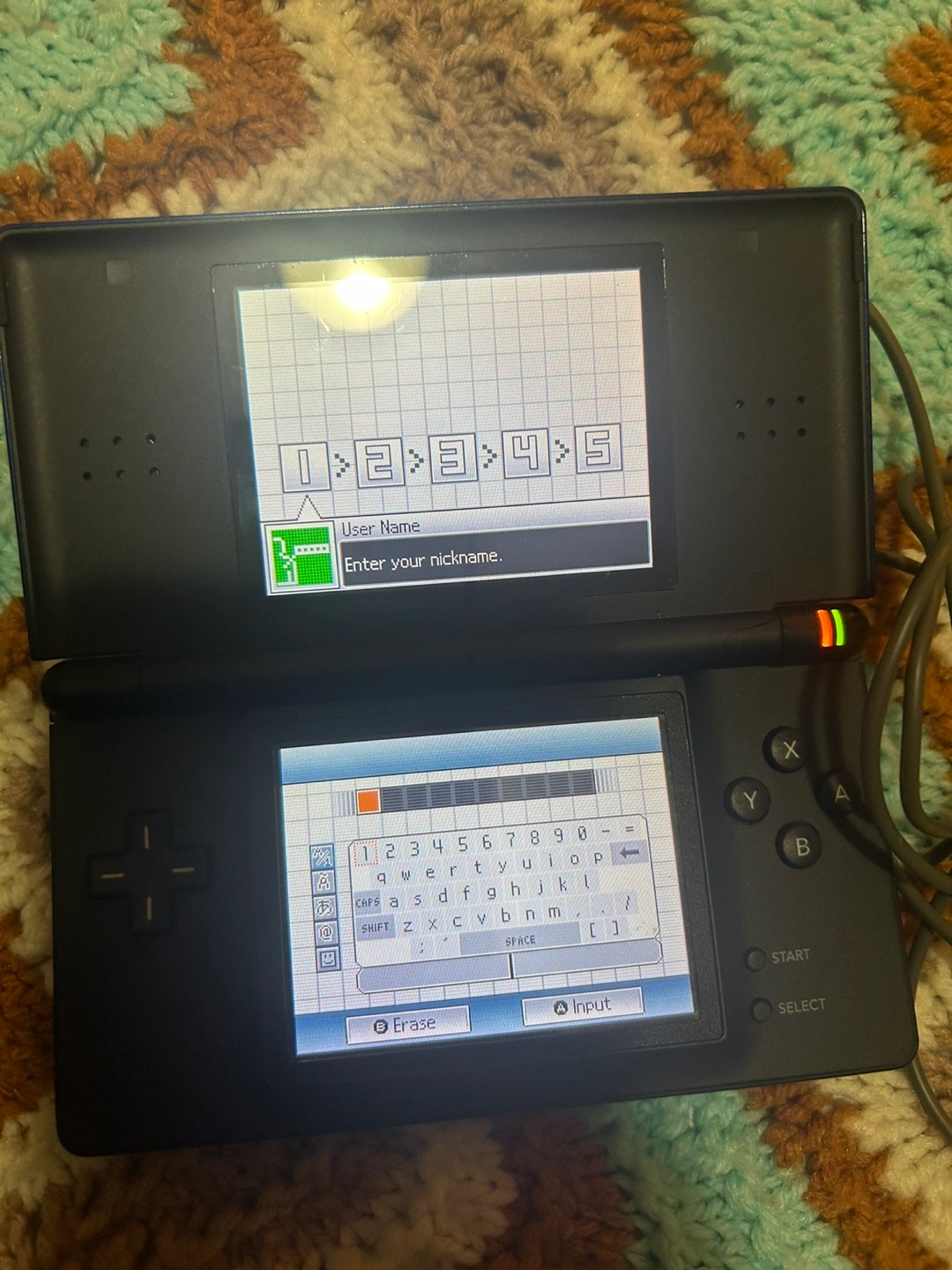 Pre-owned Nintendo DS Lite. Blue colour. Includes charger. Shows some wear. Bundle with games