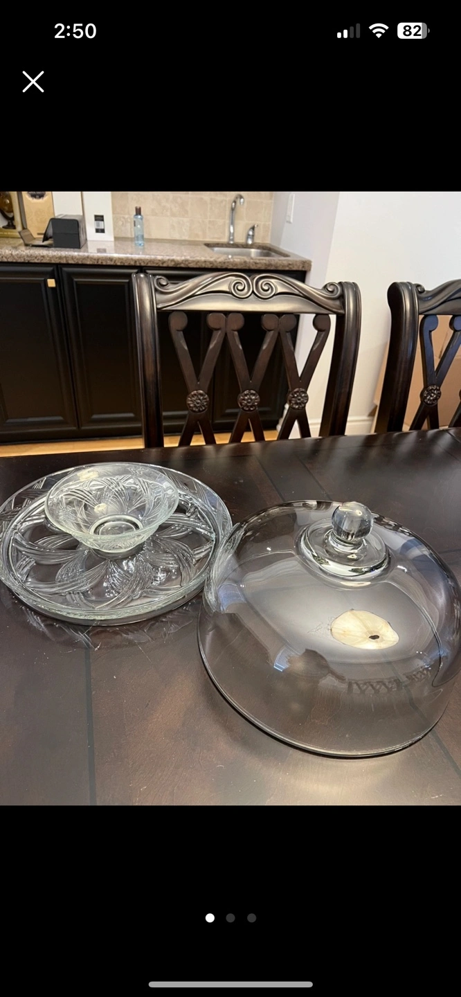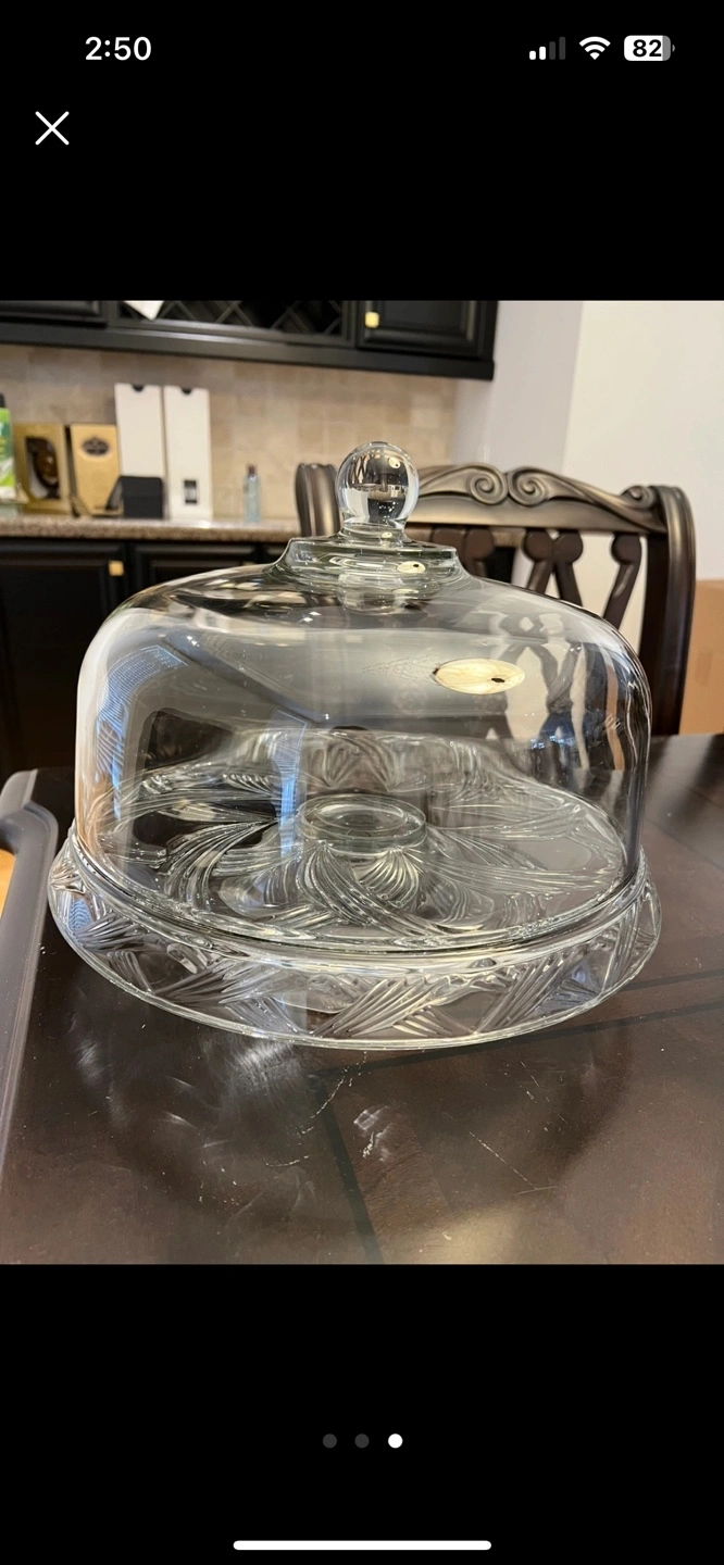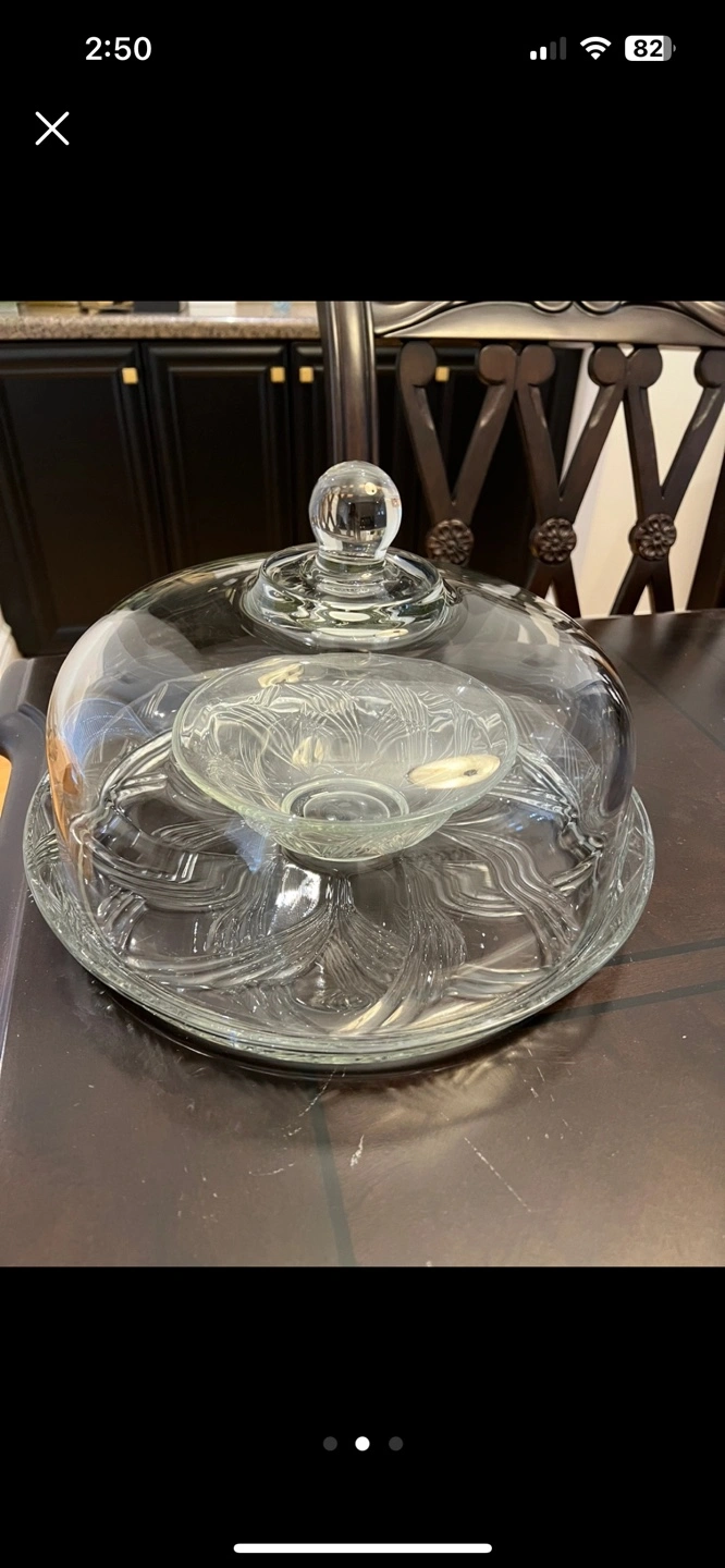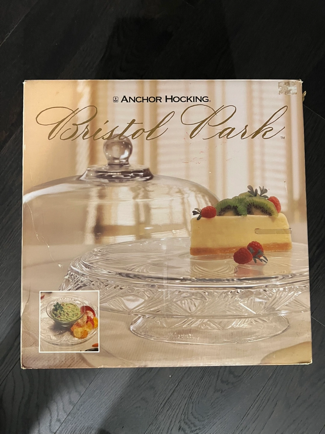 Brand new in box 2-in-1 glass cake stand and dome that also can be a chips and salsa bowl.