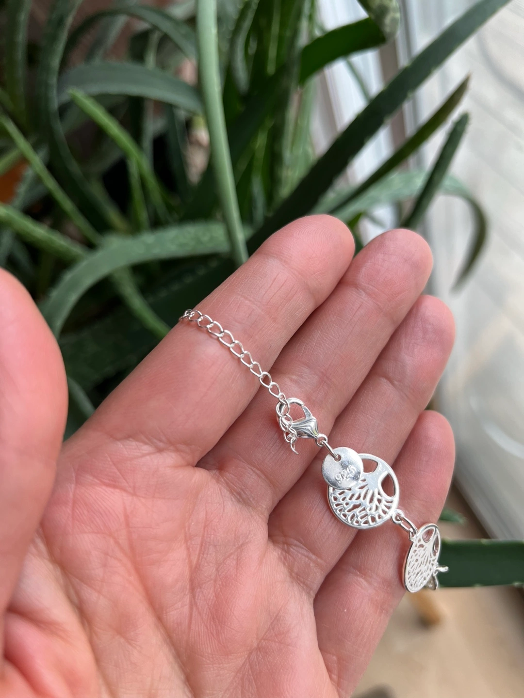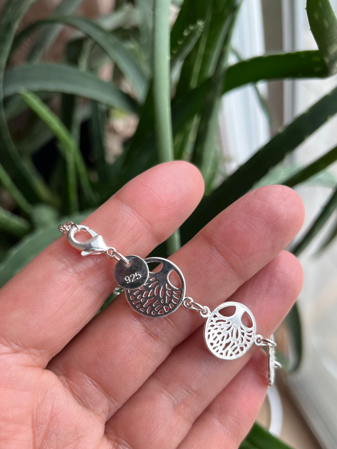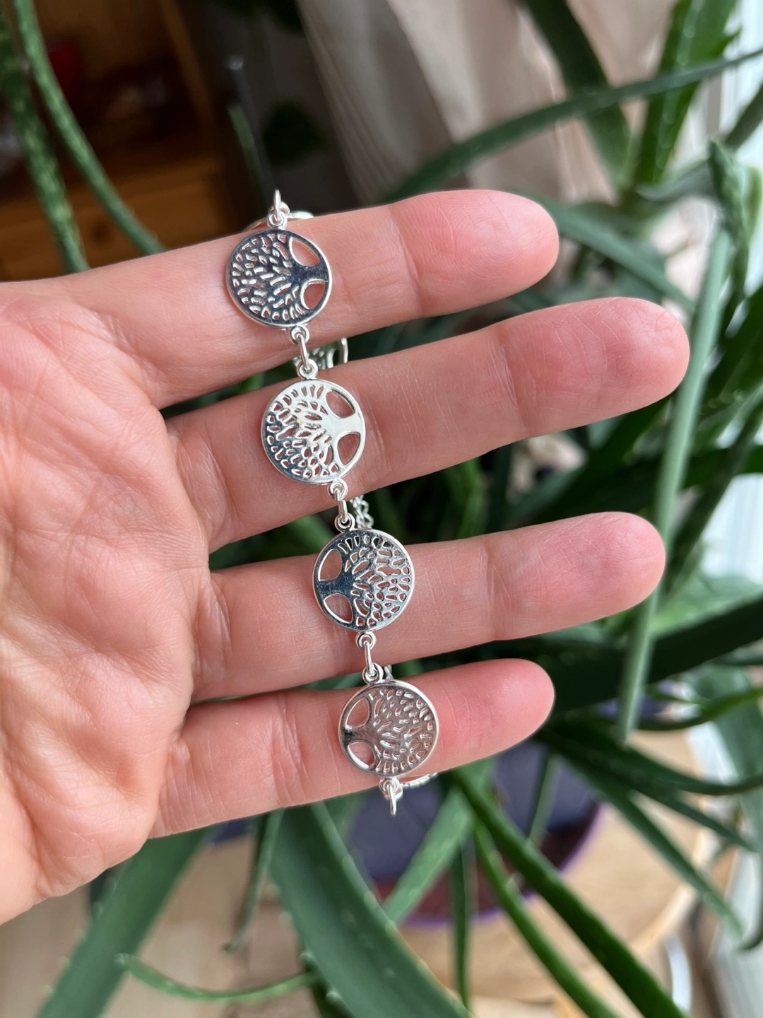 Beautiful bracelet. Features several tree of life charms. 925 silver stamp .