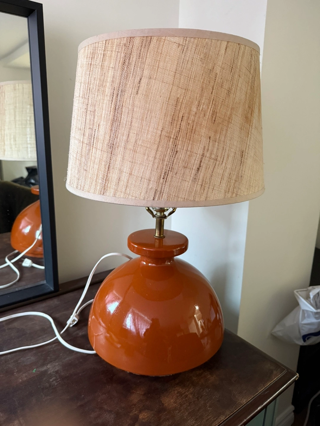 Contemporary table or nightstand lamp. Lampshade bought from pottery barn. 21 inches high from the base to the top of the lampshade Lampshade is 8.5 inches high Pick up at Jane and Dundas street west (upper bloor west area)