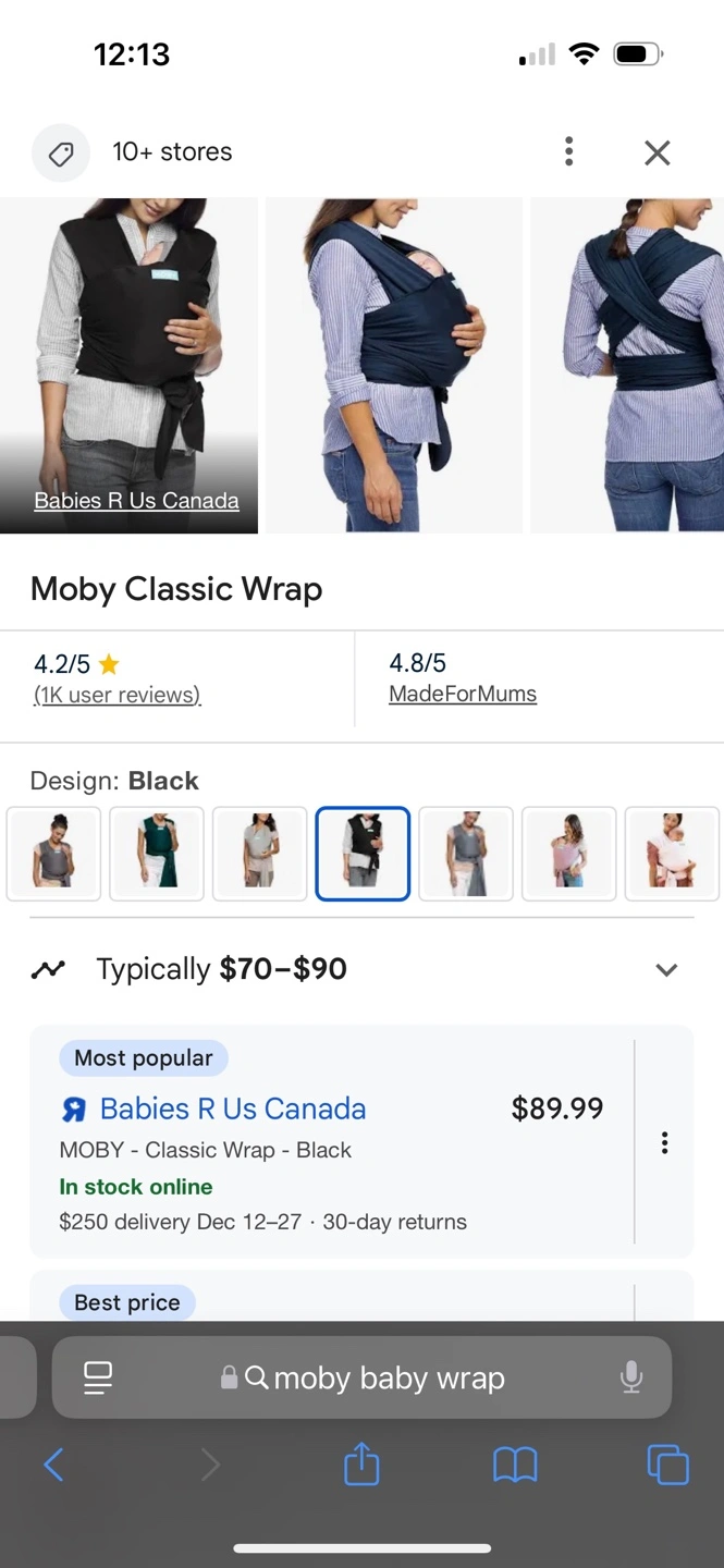 Black Moby Classic baby wrap. Includes instructions. Gently used.