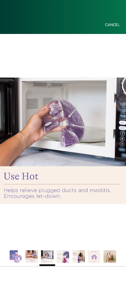 Reusable hot and cold therapy packs. Provides all-around pain relief. Helps relieve plugged ducts, mastitis, swelling, and engorgement. Encourages let-down. Microwaveable and freezable. Two packs included with removable covers. Pickup only St Clair East and O'Connor