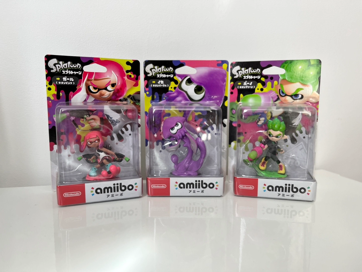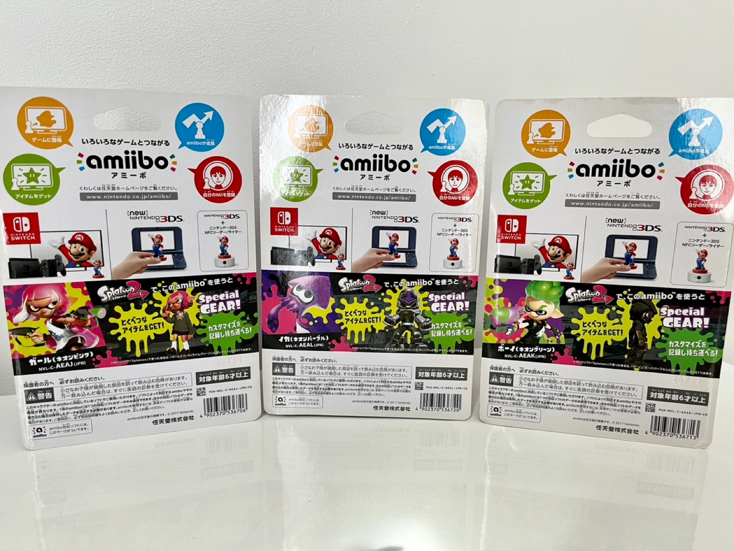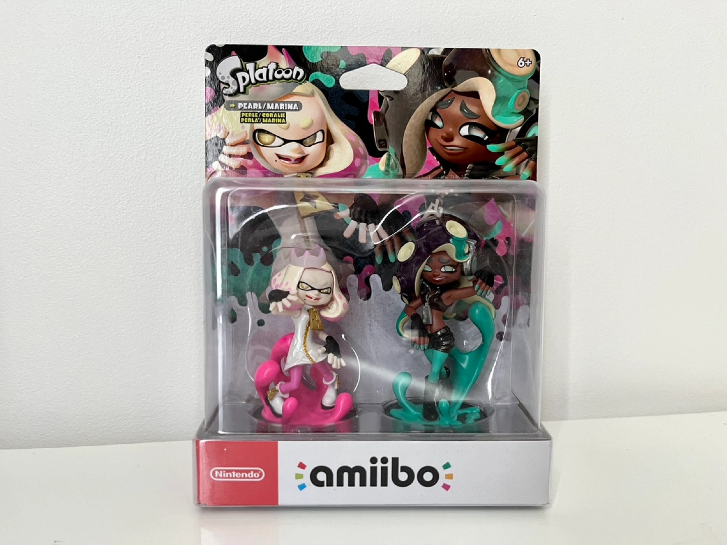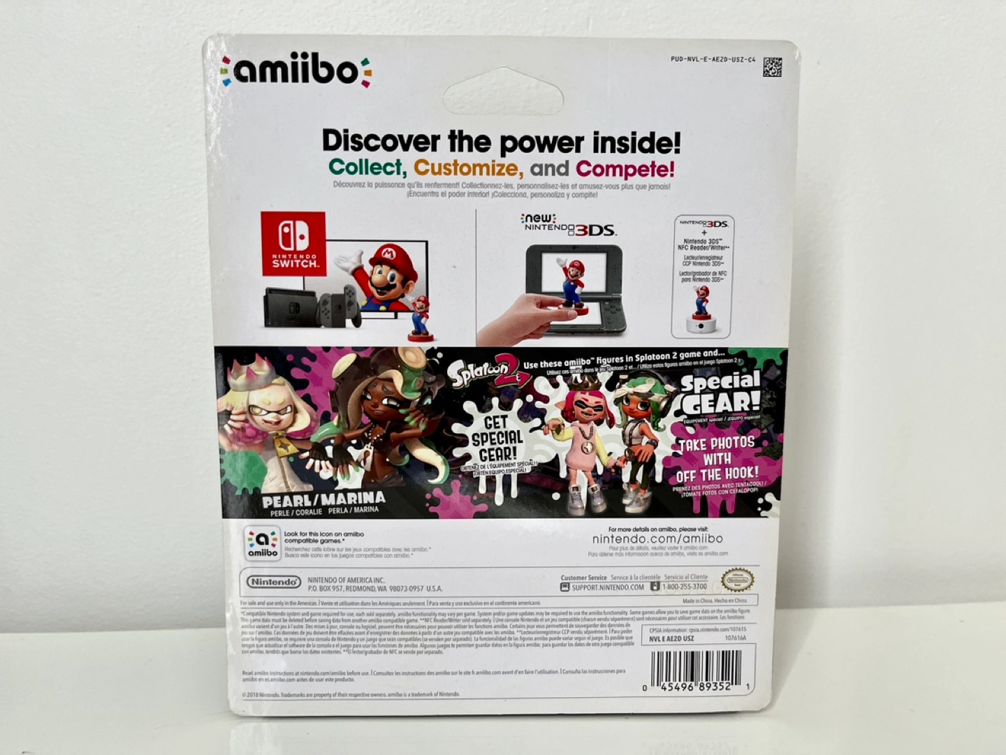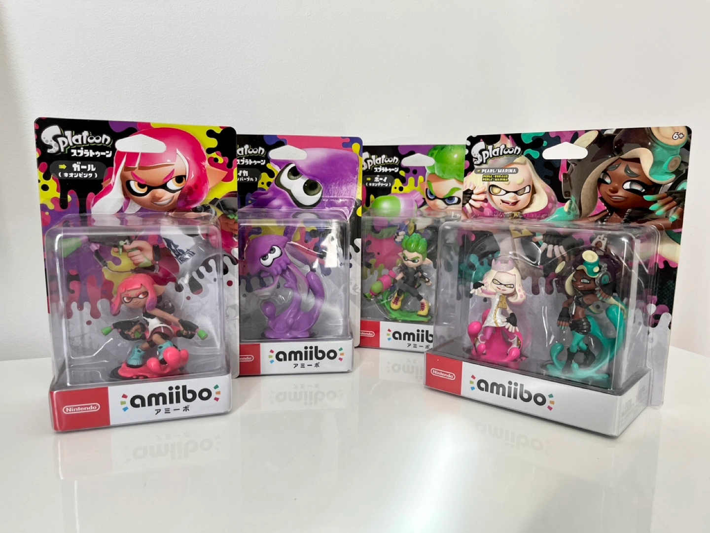 Set of Splatoon 2 amiibo figures. Open box Pearl & Marina, New in box Inkling Boy, Inkling Girl, and Squid. Collectible figures compatible with Splatoon 2 and 3, and other games. Get exclusive gear!