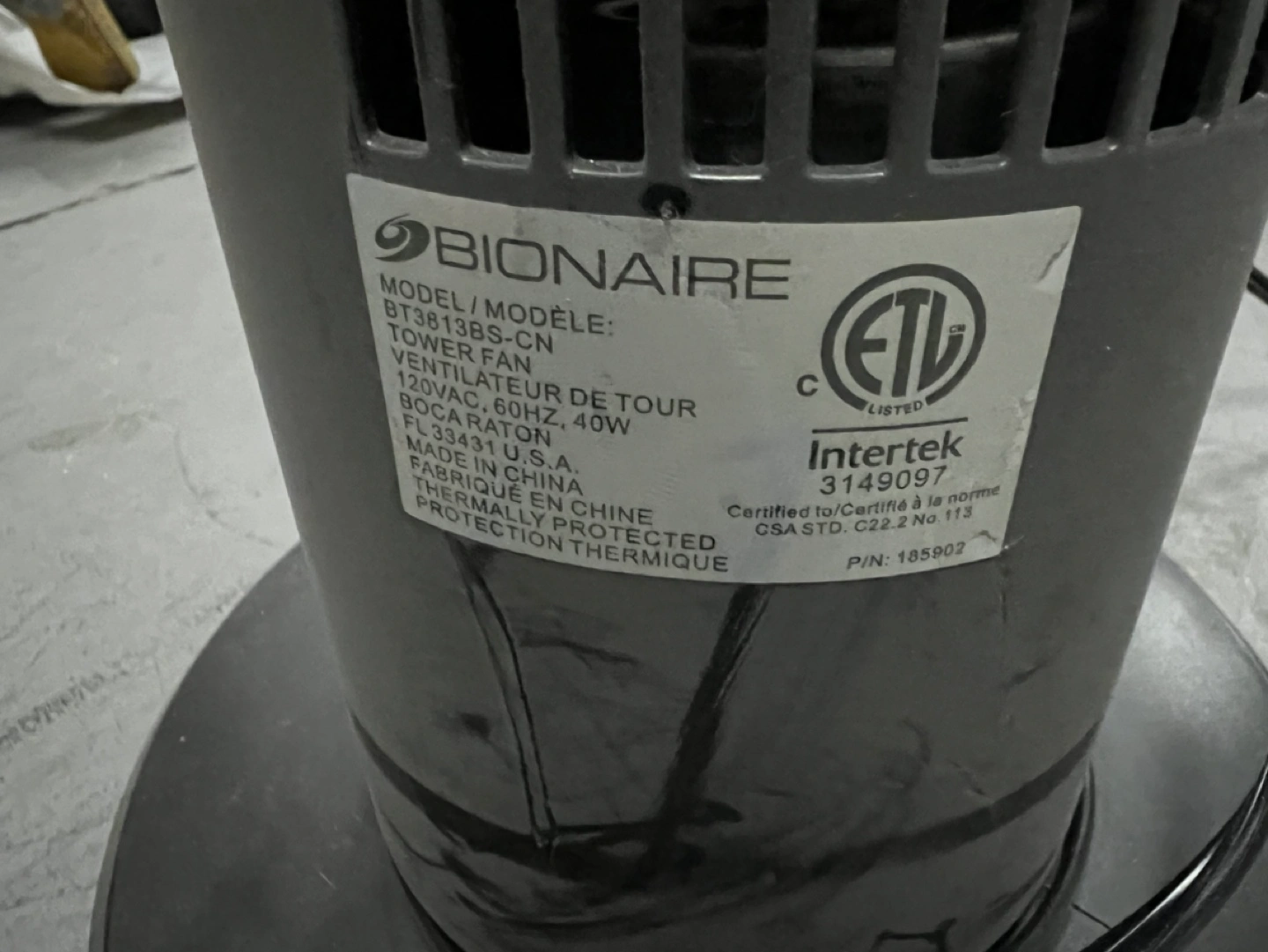 Bionaire tower fan. Model BT9813BS-CN. Blows a good amount of air! Brought for $60 Pickup & cash only