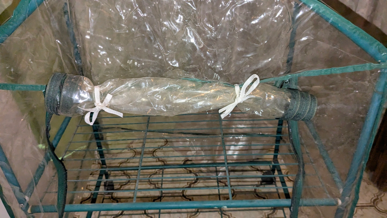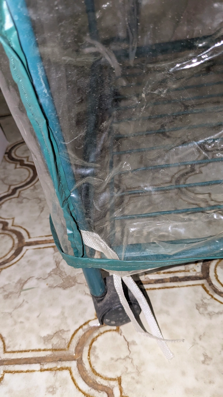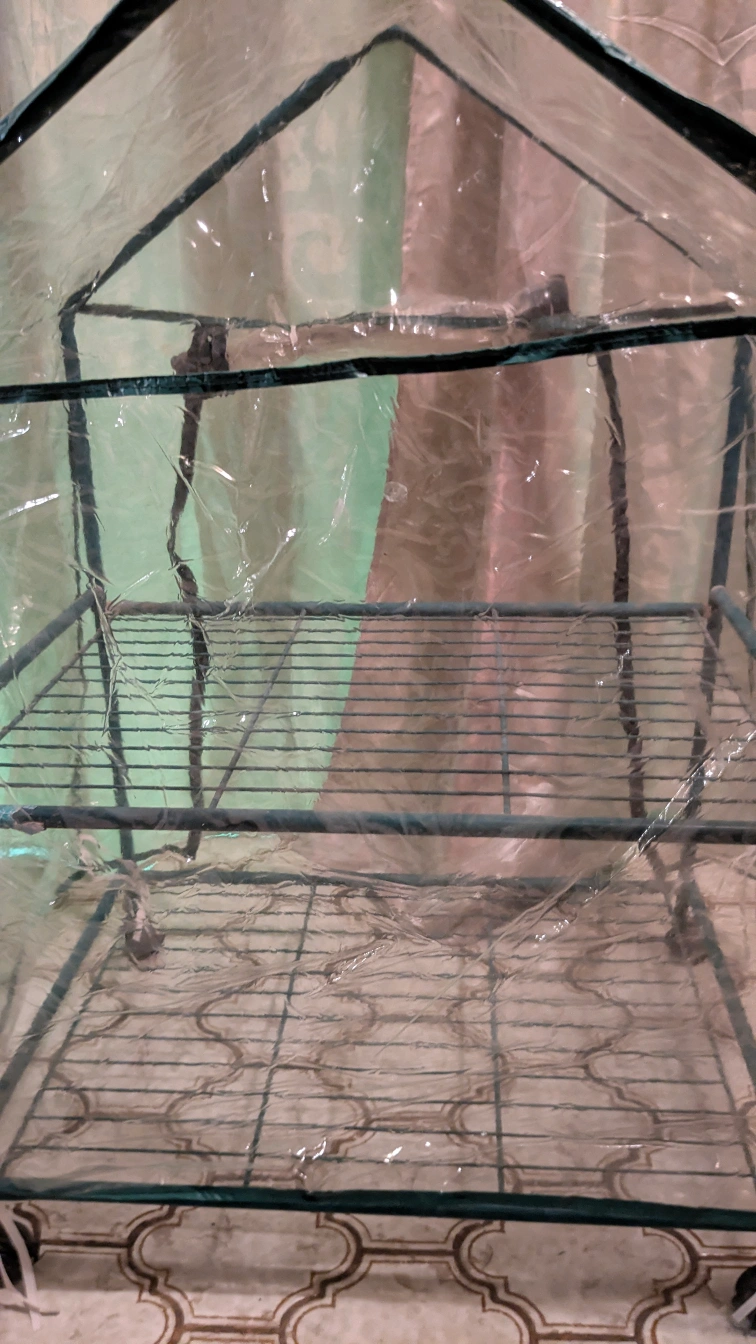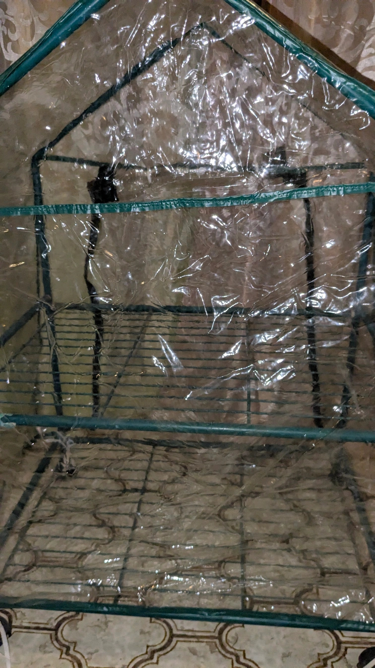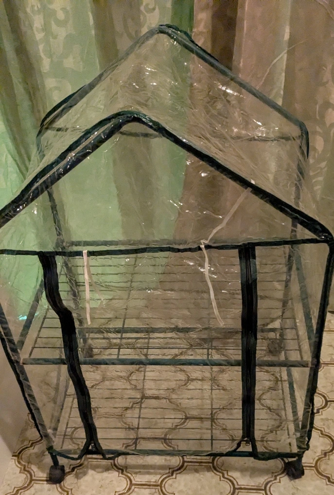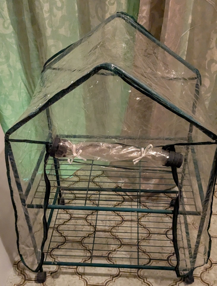 This is a great little mini greenhouse. It has wheels on the bottom so you can easily roll it from indoors to outdoors. I have never used the cover outdoors, therefore, I do not know how well the plastic holds up outdoors. The plastic cover has two zippers on the front to allow you to fold it up and easily access your plants inside. If you have cats, I am sure this will do a great job of protecting your plants from the cats. as you can see from the photograph, you can tie the sides of the plastic down to keep the plastic in place. The wheels on this item roll very smoothly. The plastic is in great condition. This is in like new condition as my house does not have enough light for plants. I tended to use my sunroom and therefore did not use this item very much. DIMENSIONS at the PEAK: 40" MAIN: 27.5" W x 20"D x 30" H Thank you for looking at our listing. We always welcome questions . From a smoke-free home.
