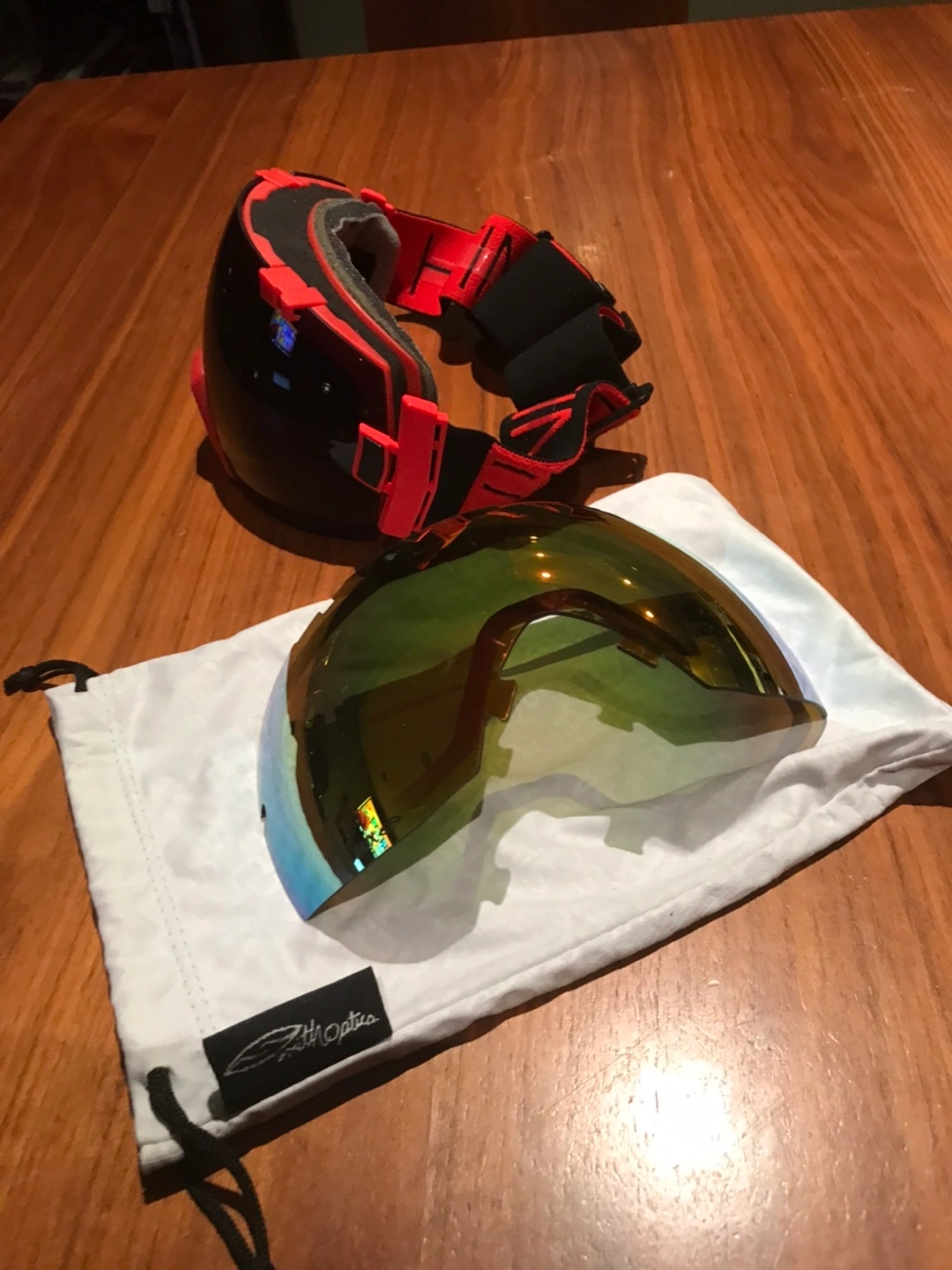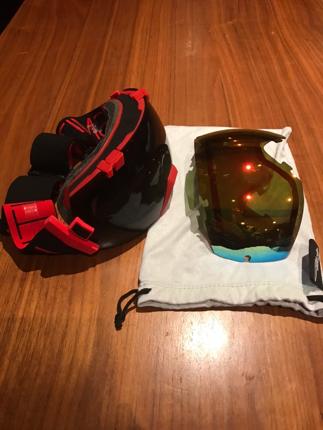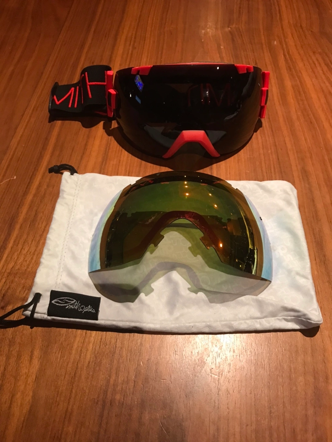 Red and black snow goggles. Includes extra lens. Adjustable strap. Comes with a carrying bag. Whether you're dropping in on a hike-to line or charging through a storm day at the resort, the Smith 4D XL goggles set you up with the best field of view possible. They combine the unmatched peripheral range of our BirdsEye Vision™ lens with an oversize XL frame and the terrain boosting optics of ChromaPop™, so you don't miss a wind lip or terrain change. Our MAG lens-change tech lets you swap lenses to match the light conditions with ease. Their XL size makes them the only OTG compatible goggles in our 4D lineup. Buckle up and embrace the fall line with confidence. *paid $370+tax=$418 *Cash & pick up only. Reason for sale: have many more goggles.