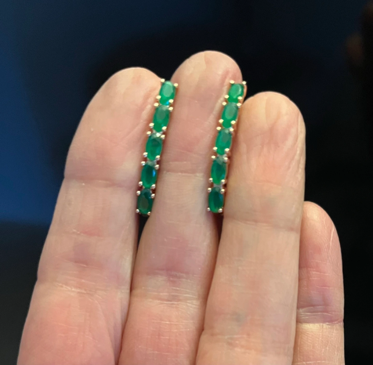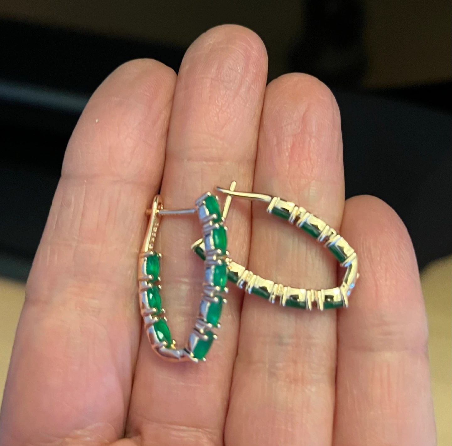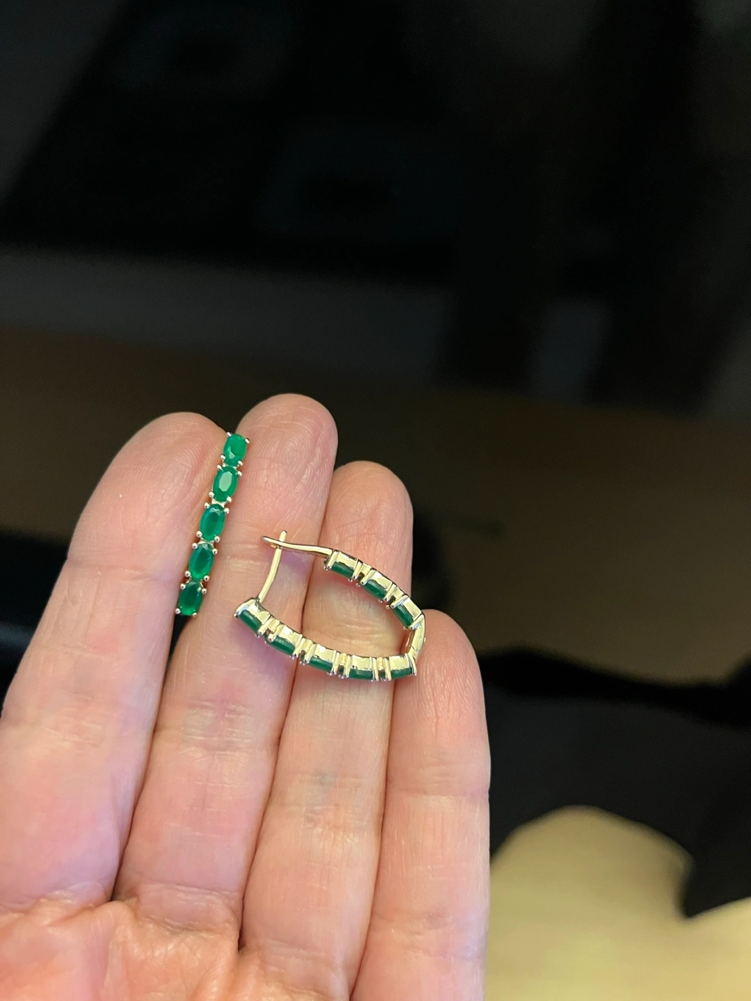 Elegant green and rose gold hoop earrings. Subtle and stylish. Perfect for everyday wear or a special occasion.