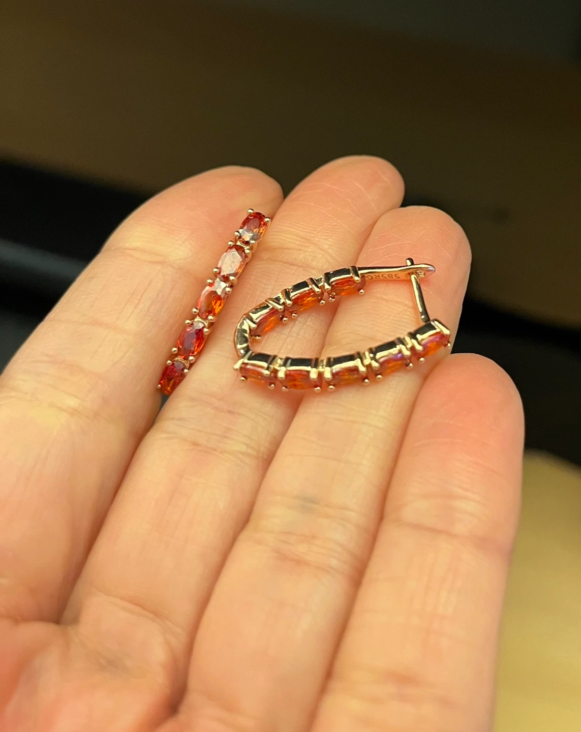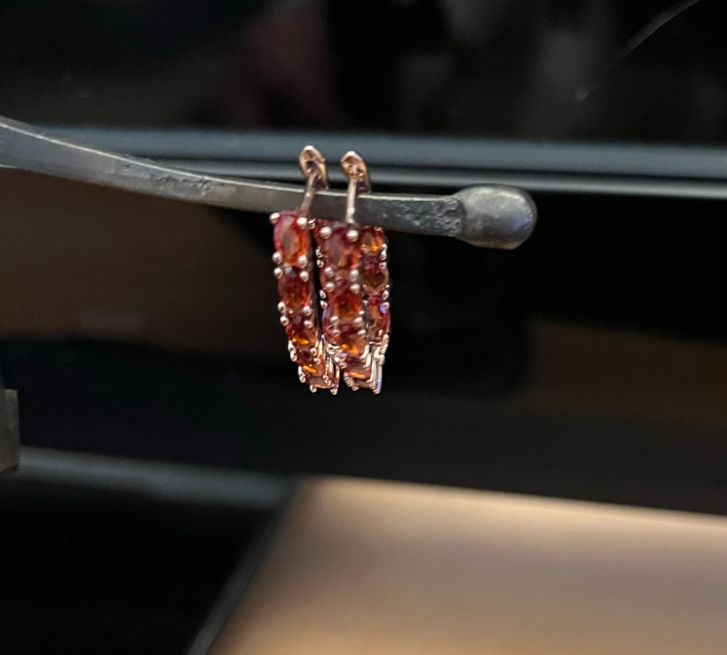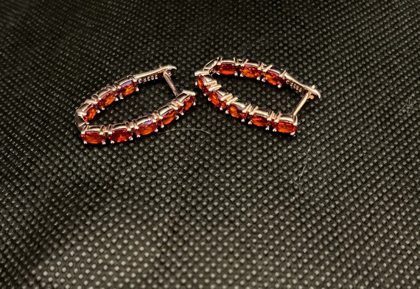 Beautiful res gemstone hoop earrings. Rose gold coloured metal. Lightweight and elegant. Perfect for everyday wear or a special occasion. Gold plated