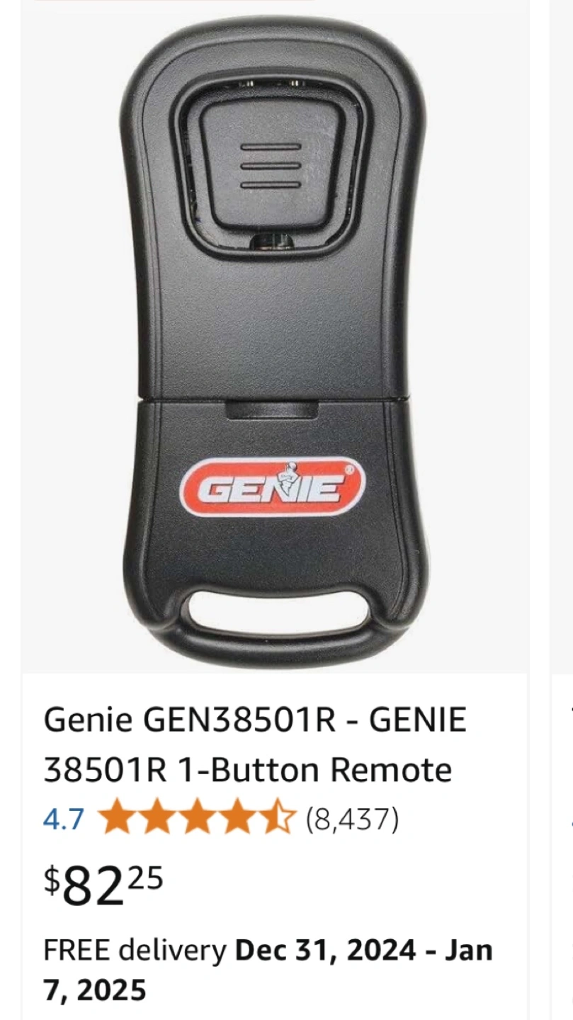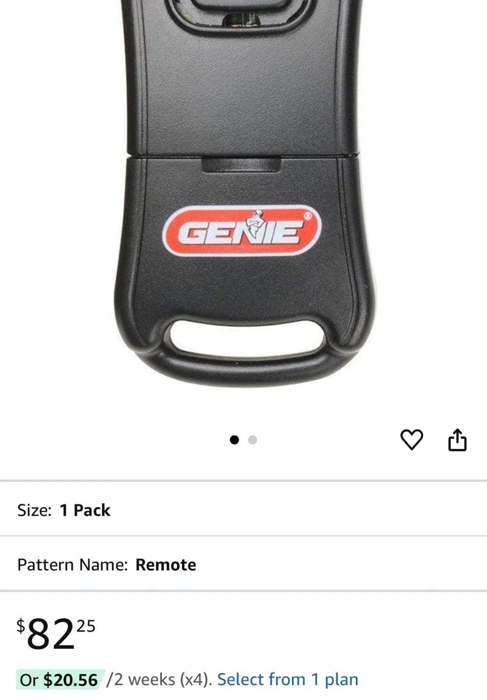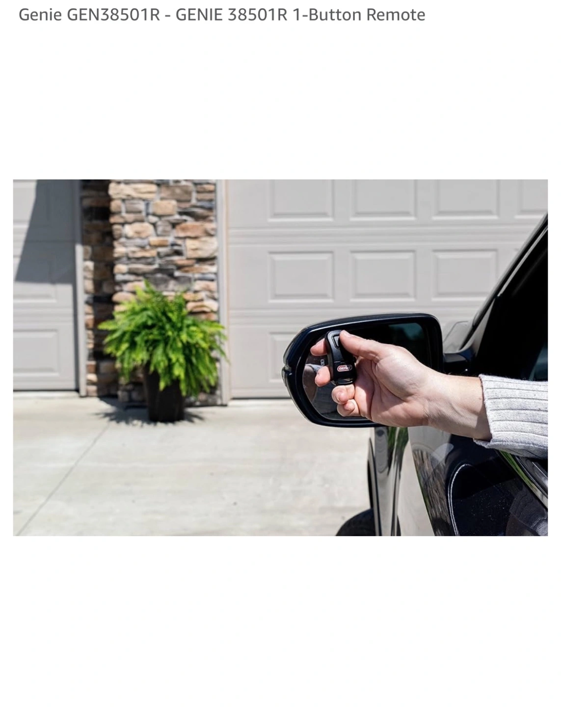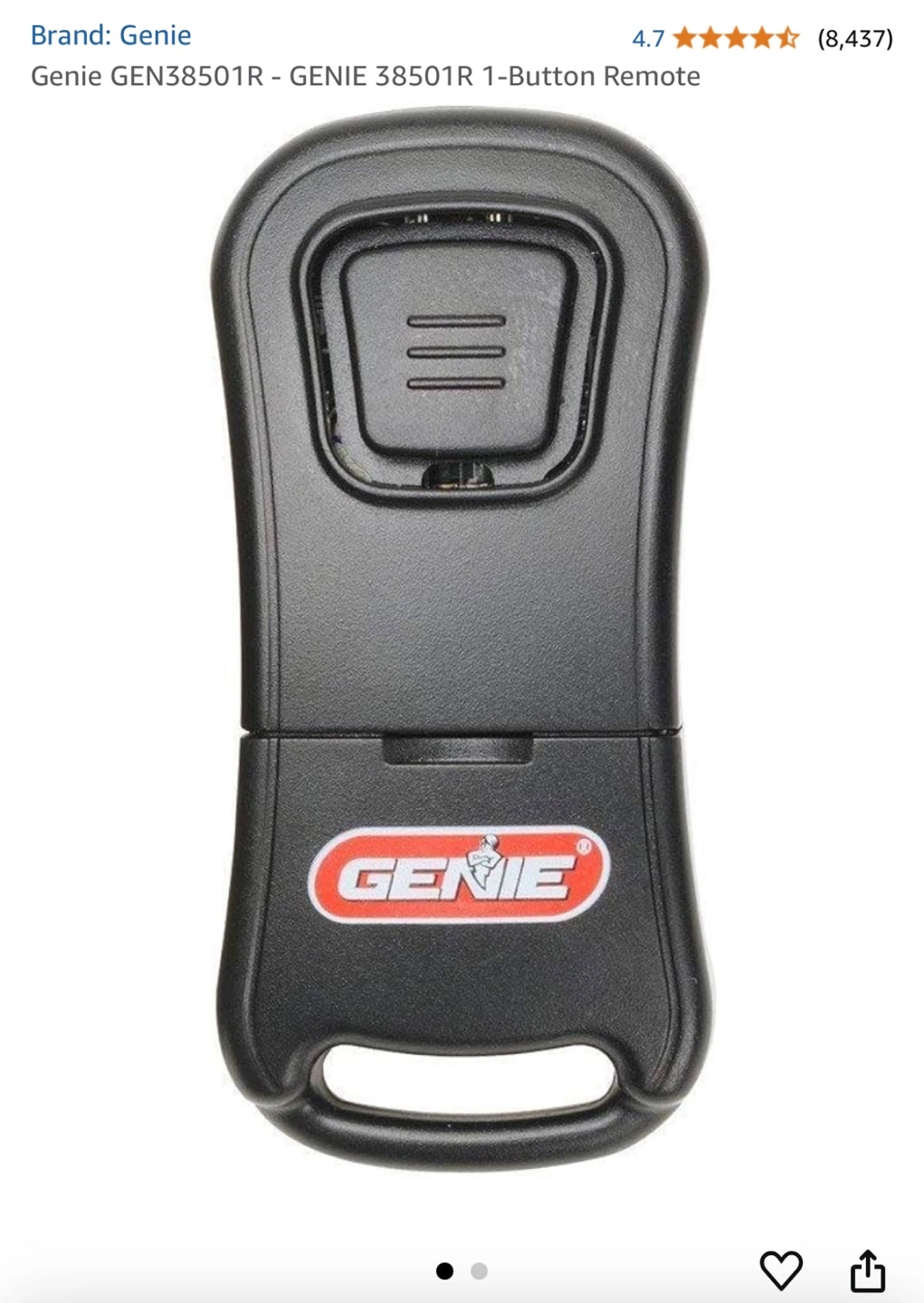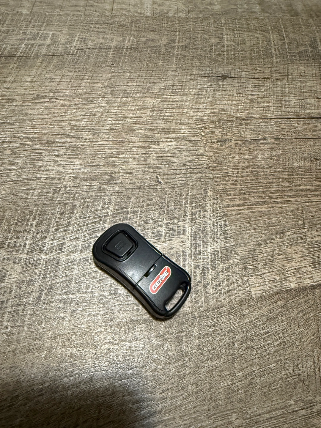 Used Genie garage door opener remote. One button. Compact design. Works with Genie garage door openers.