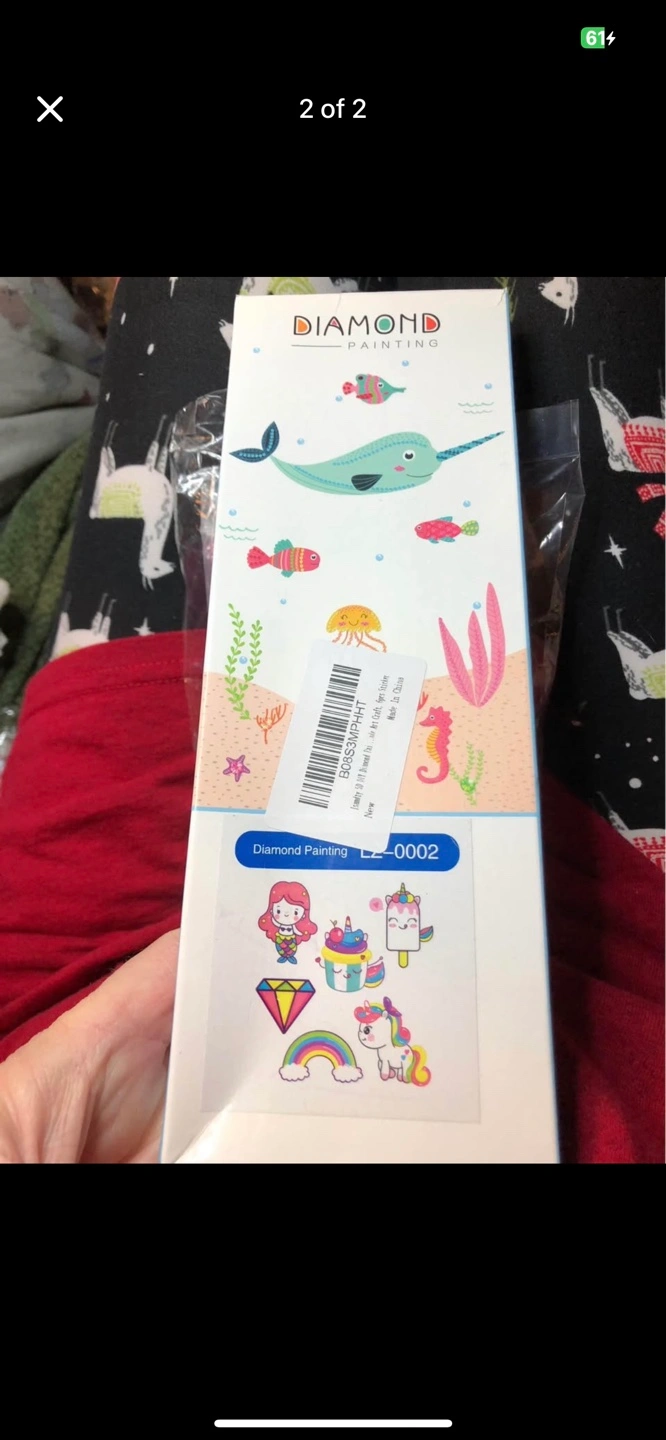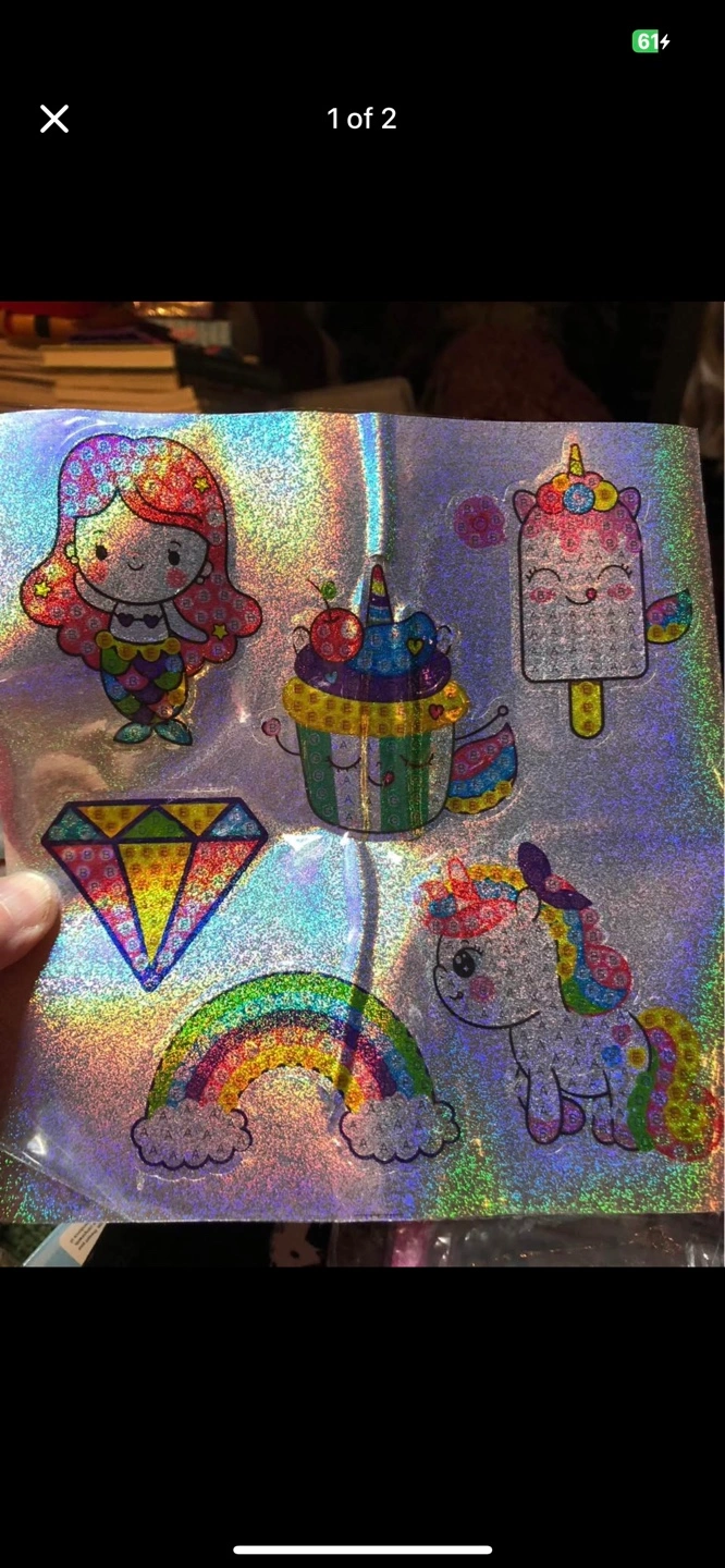 Cute diamond dot art sticker kit. Features a mermaid, unicorn, rainbow, cupcake and popsicle. Great for kids or adults. Includes all necessary materials.