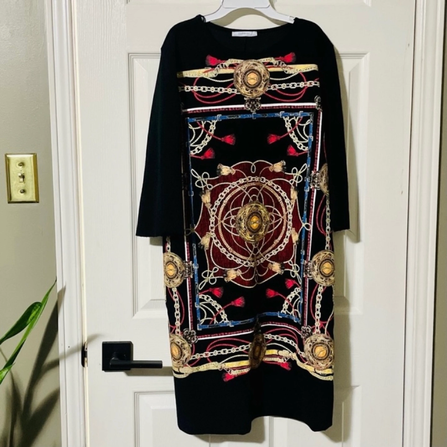 Zara Beautiful Geometric Dress with Rubberized Print Size Medium Materials: 97% Polyester 3% Elastane