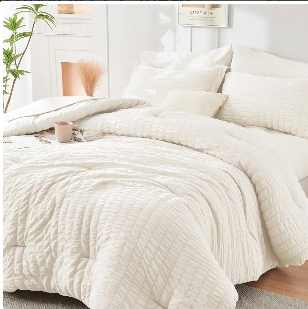 HYMOKEGE Ivory duvet All Season.Only includes the Duvet. Hypoallergenic, breathable, comfortable, and skin-friendly. Sheets, Pillowcases & Shams not included. New, distressed package.