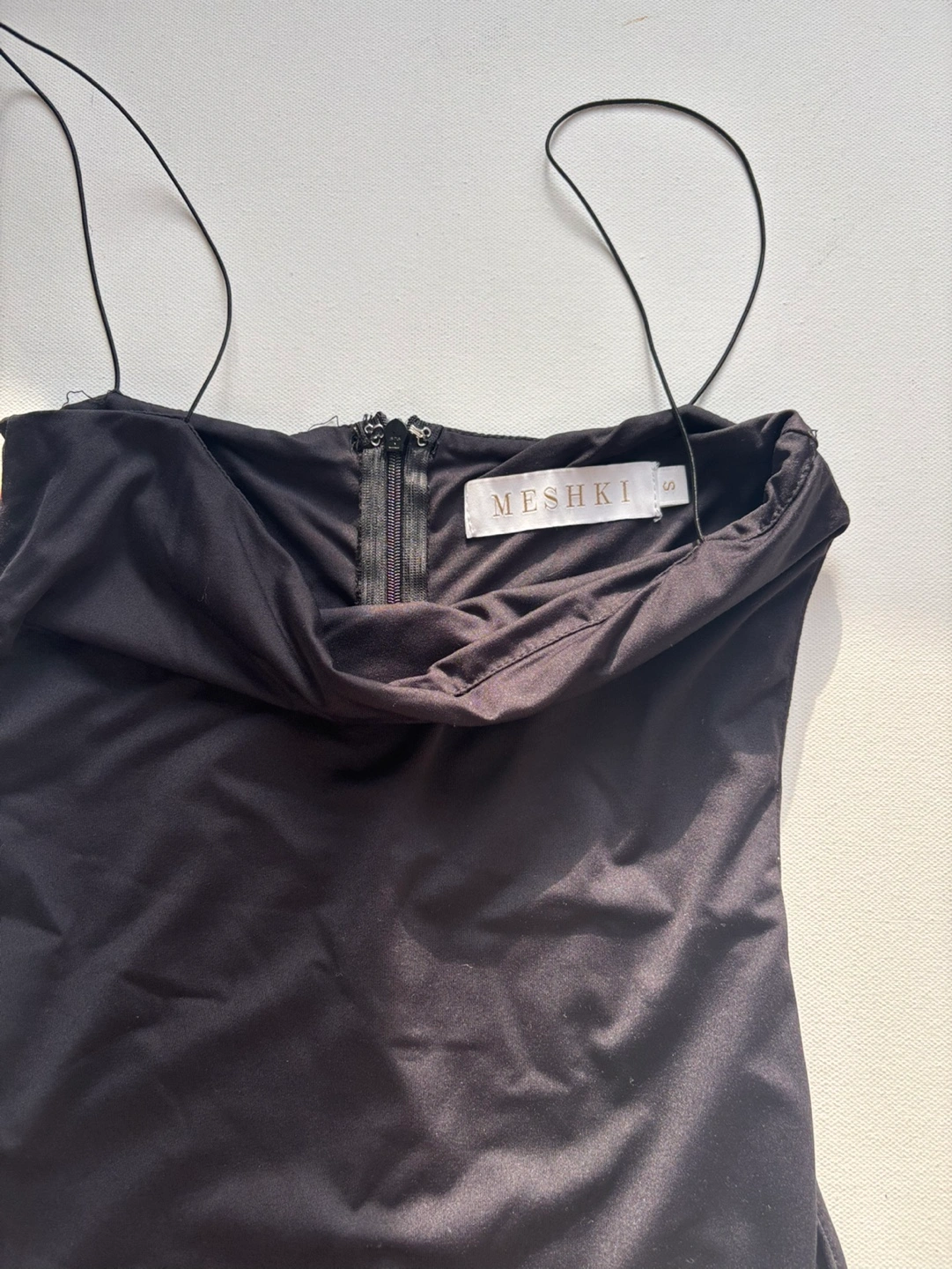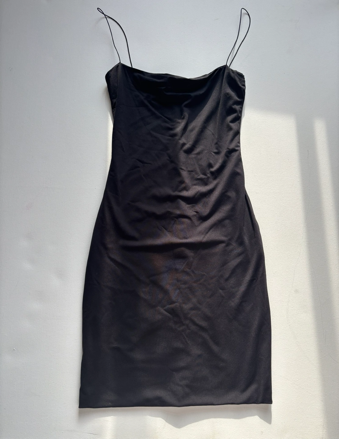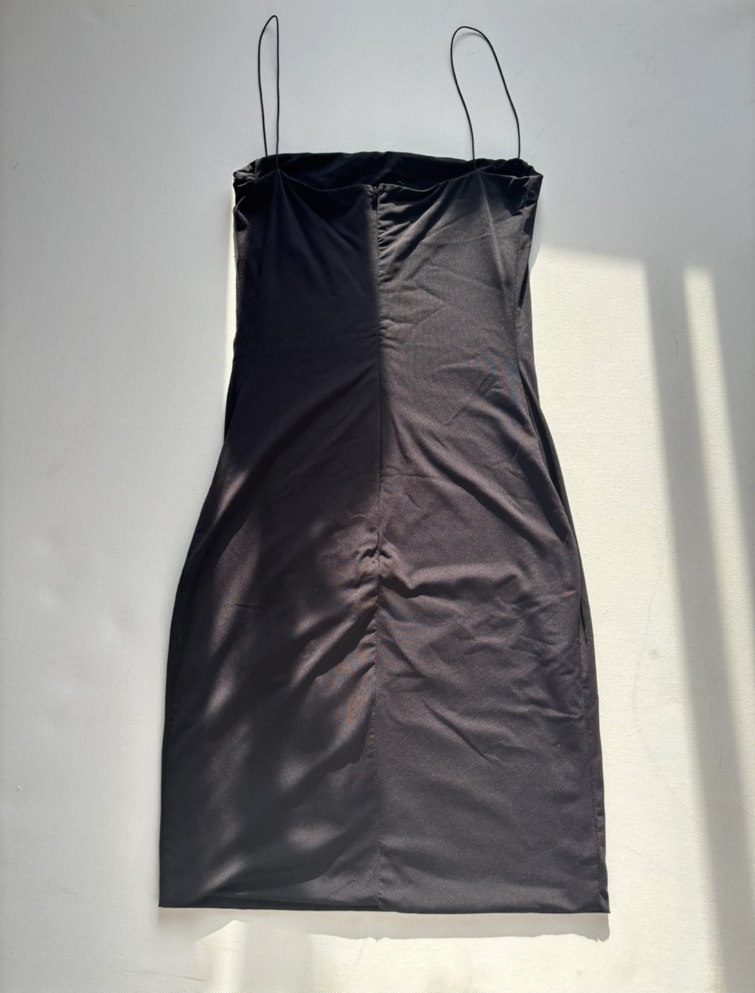 •Has a back zipper •Thin straps •Length 32.5” •Pit to pit approximately 13” •Great condition