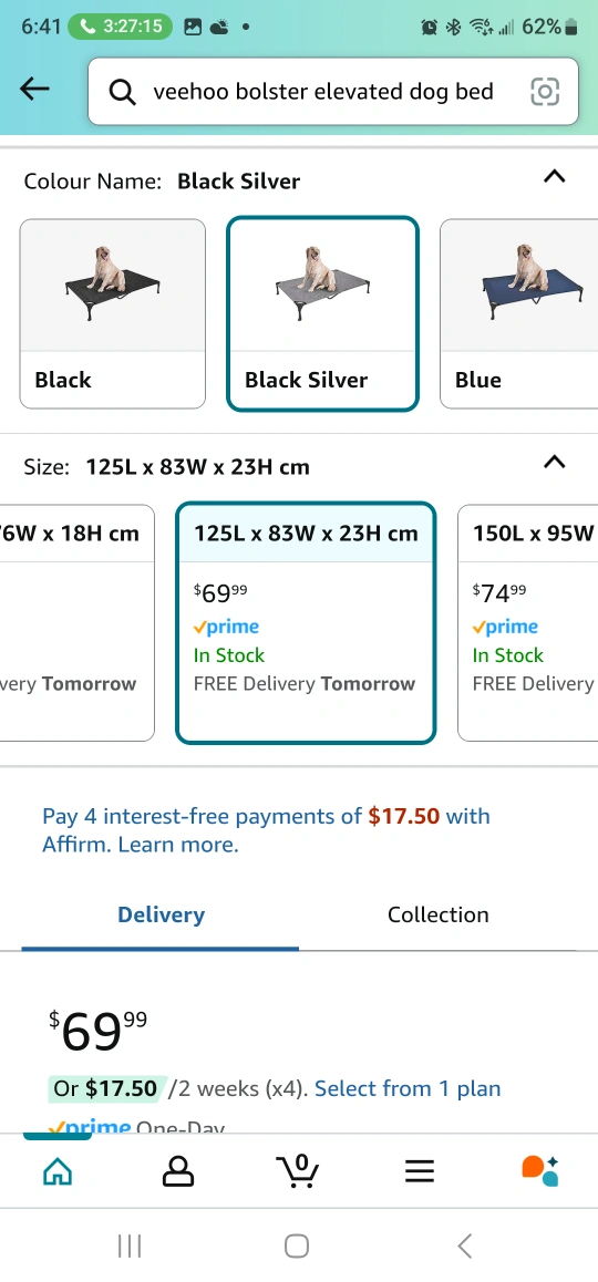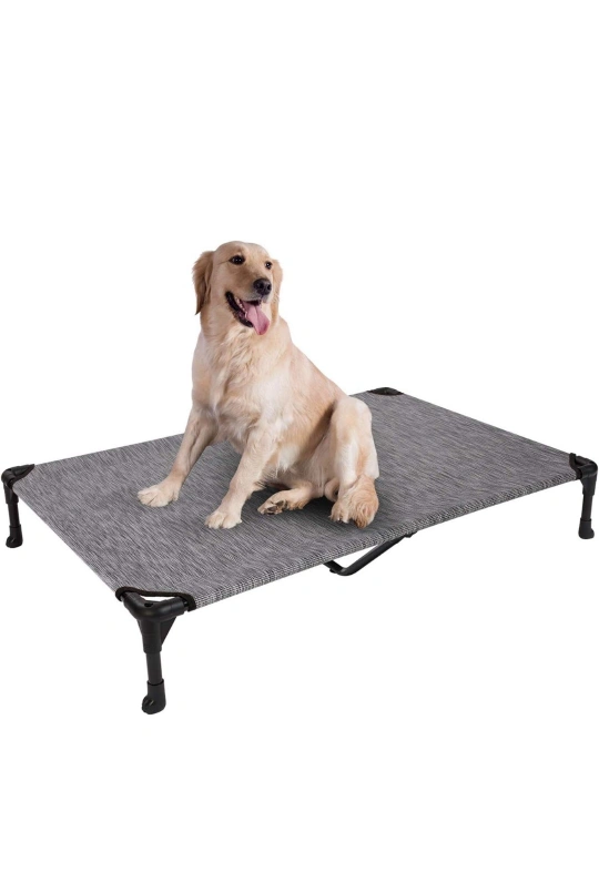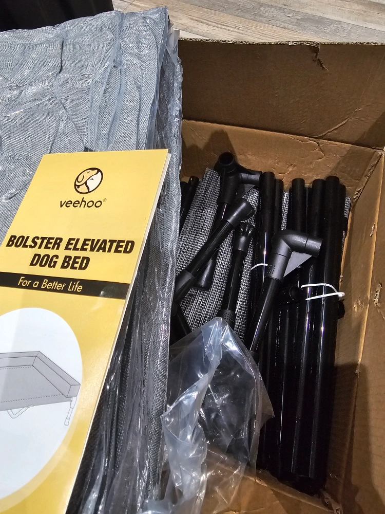 Elevated dog bed. Grey fabric. Black frame. Easy assembly. Durable and comfortable. Great for medium-sized dogs. 125L x 83W x 23H Sold for $70, asking $34 firm