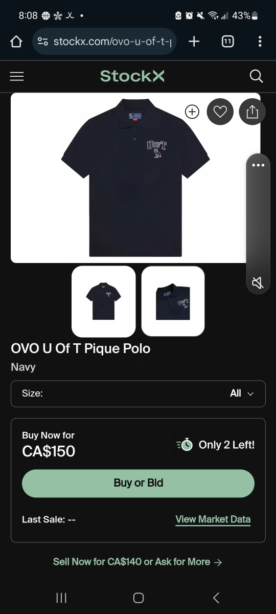 Limited Edition from 2022. Brand new with tags. Men's size large. Navy blue. Made in Canada. Part of the OVO x University of Toronto collaboration. New versions sell for $120+ https://stockx.com/ovo-u-of-t-pique-polo-navy