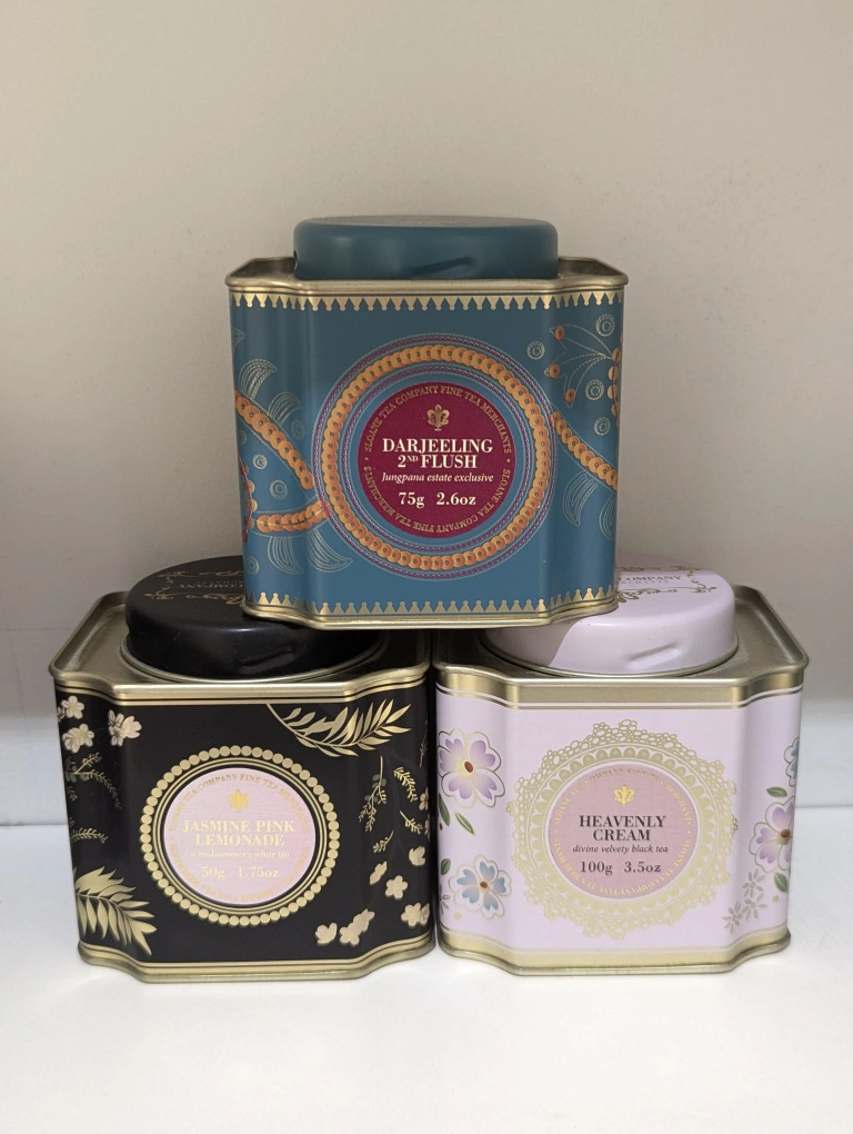 Set of three empty Sloane Tea Company tin caddies. Sold together. Beautiful classic design from their older packaging. Perfect for storage or decoration. Selling most of my stuff to declutter. Pick up only. Cash only. Reasonable offers welcome, especially if you're getting multiple items.