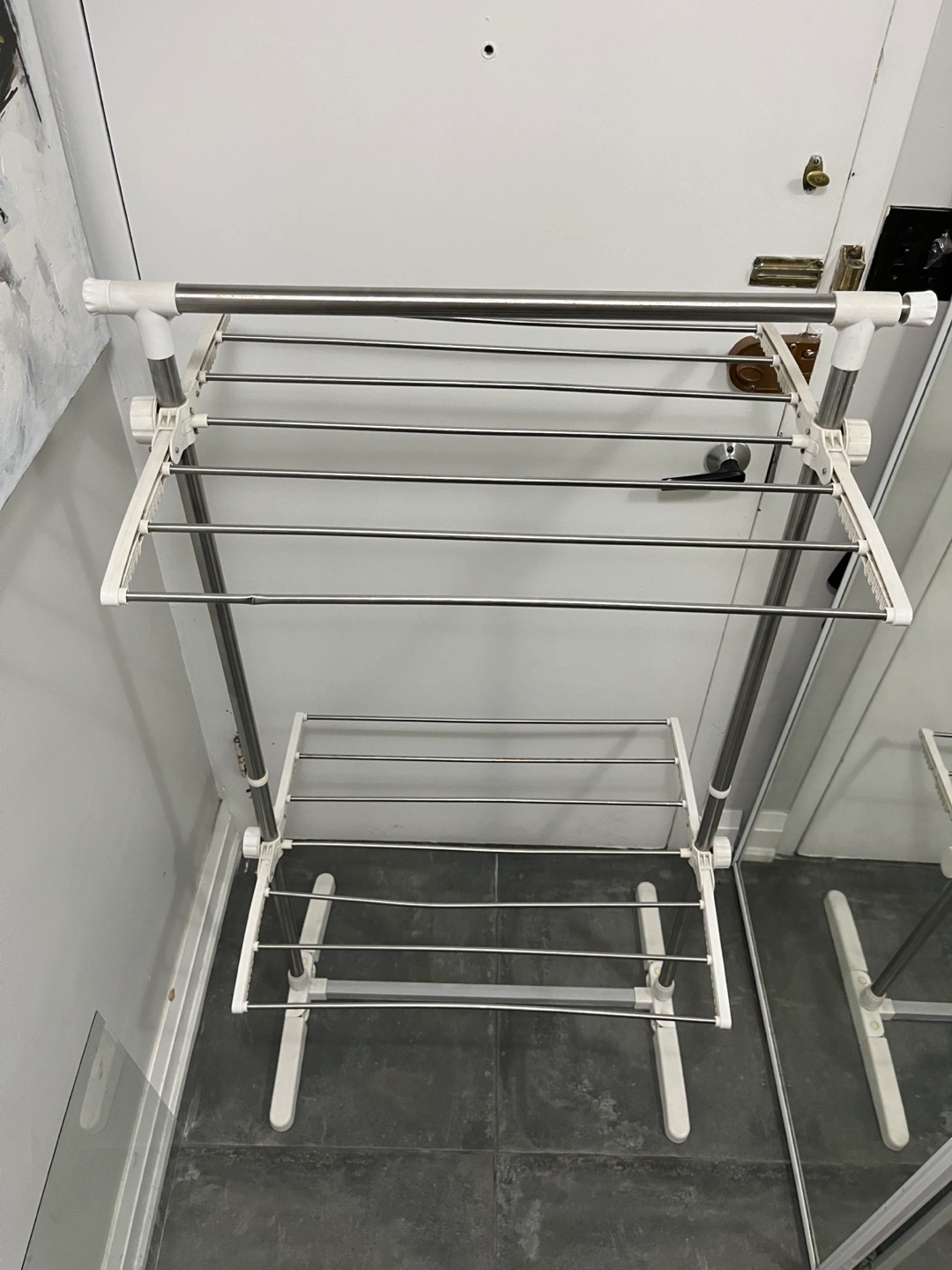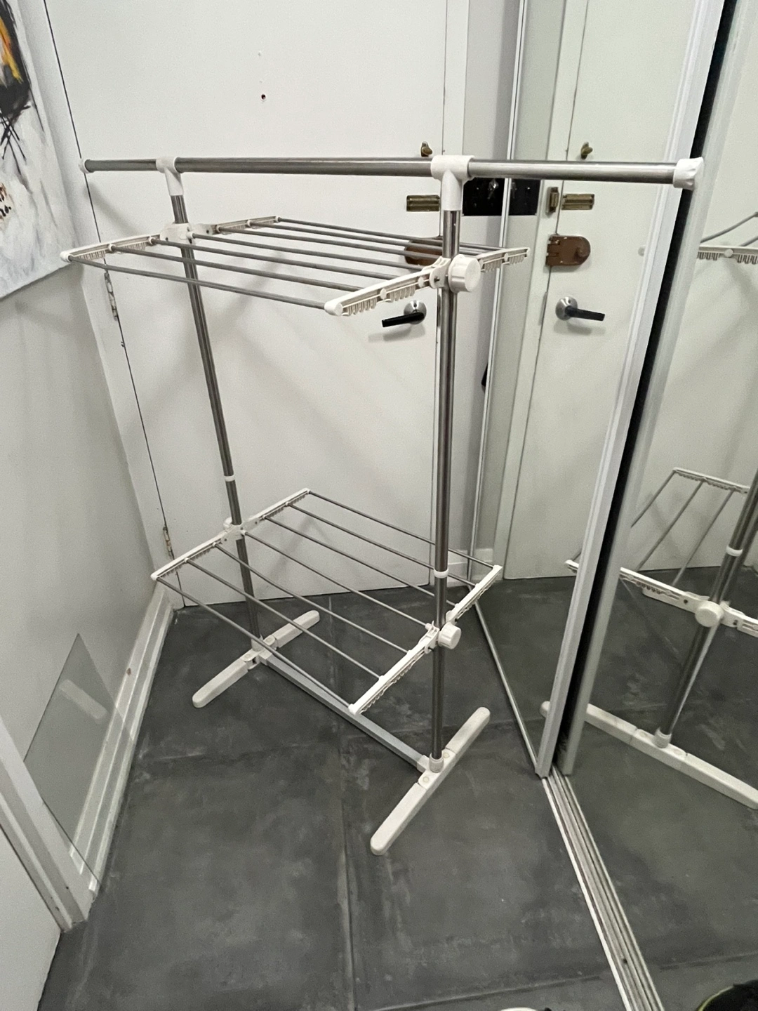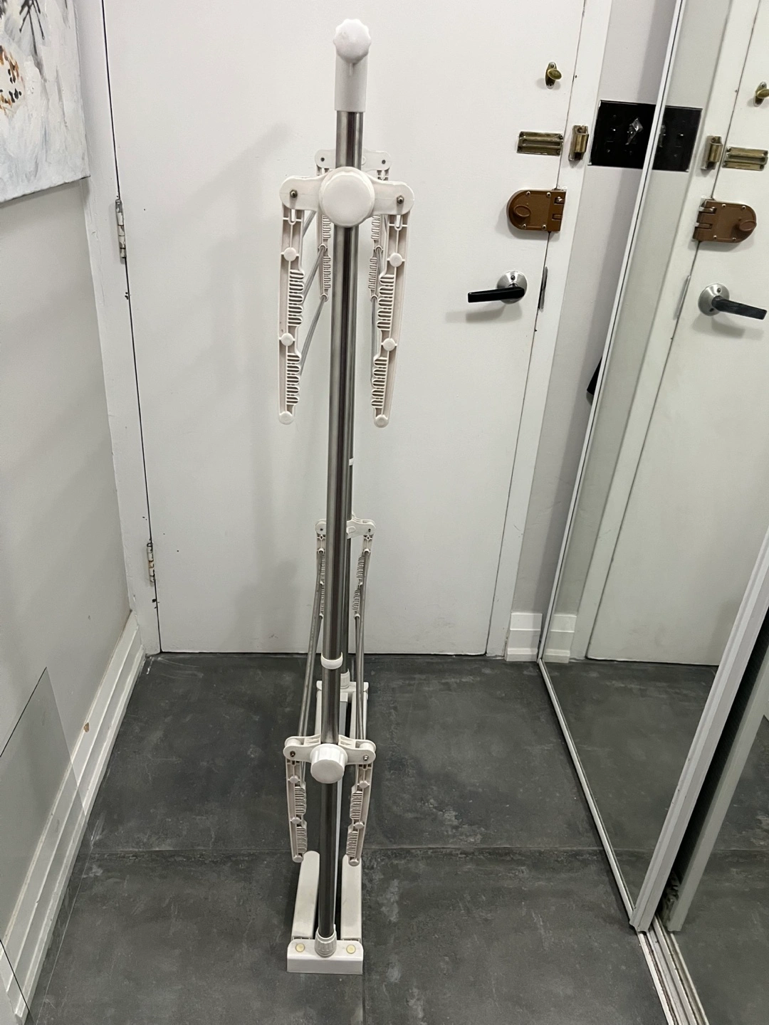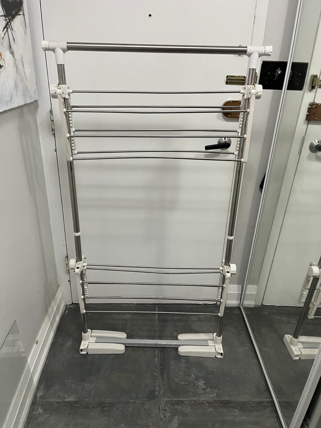 Freestanding clothes drying rack. Multiple drying bars. Space saving design. Collapsible for easy storage.expandable top bar for more hanging capacity You can pick up by Carlton and Jarvis area Serious enquiries only please. Too many people wasting my time and low balling and not following up.