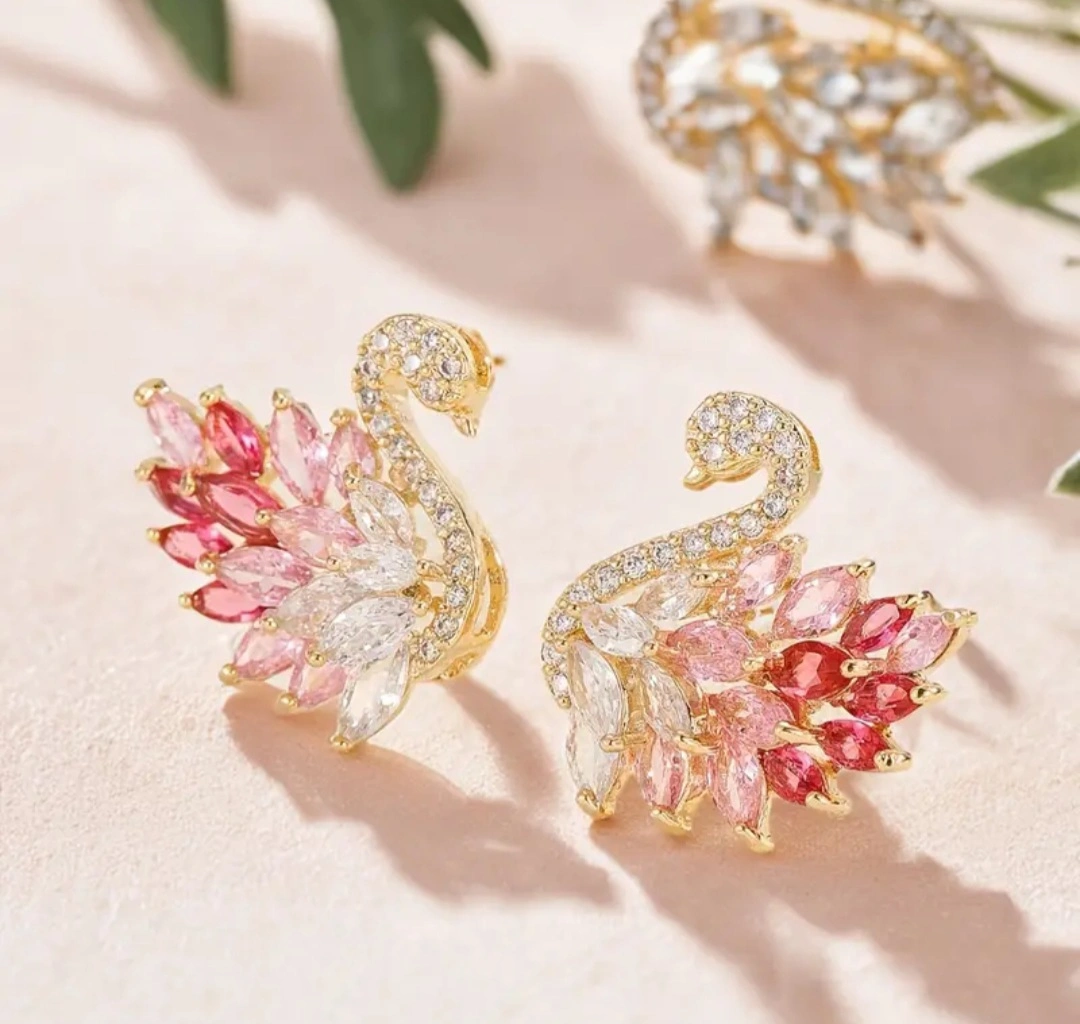 Each pair 10CAD Elegant swan-shaped earrings. Features sparkly cubic zirconia. Perfect for adding a touch of elegance to any outfit.😍🎉🤩 Color options available as posted . Smoke free and pet free home Kindly note all sales are final and no return or refund Please check my other listings aswell😊
