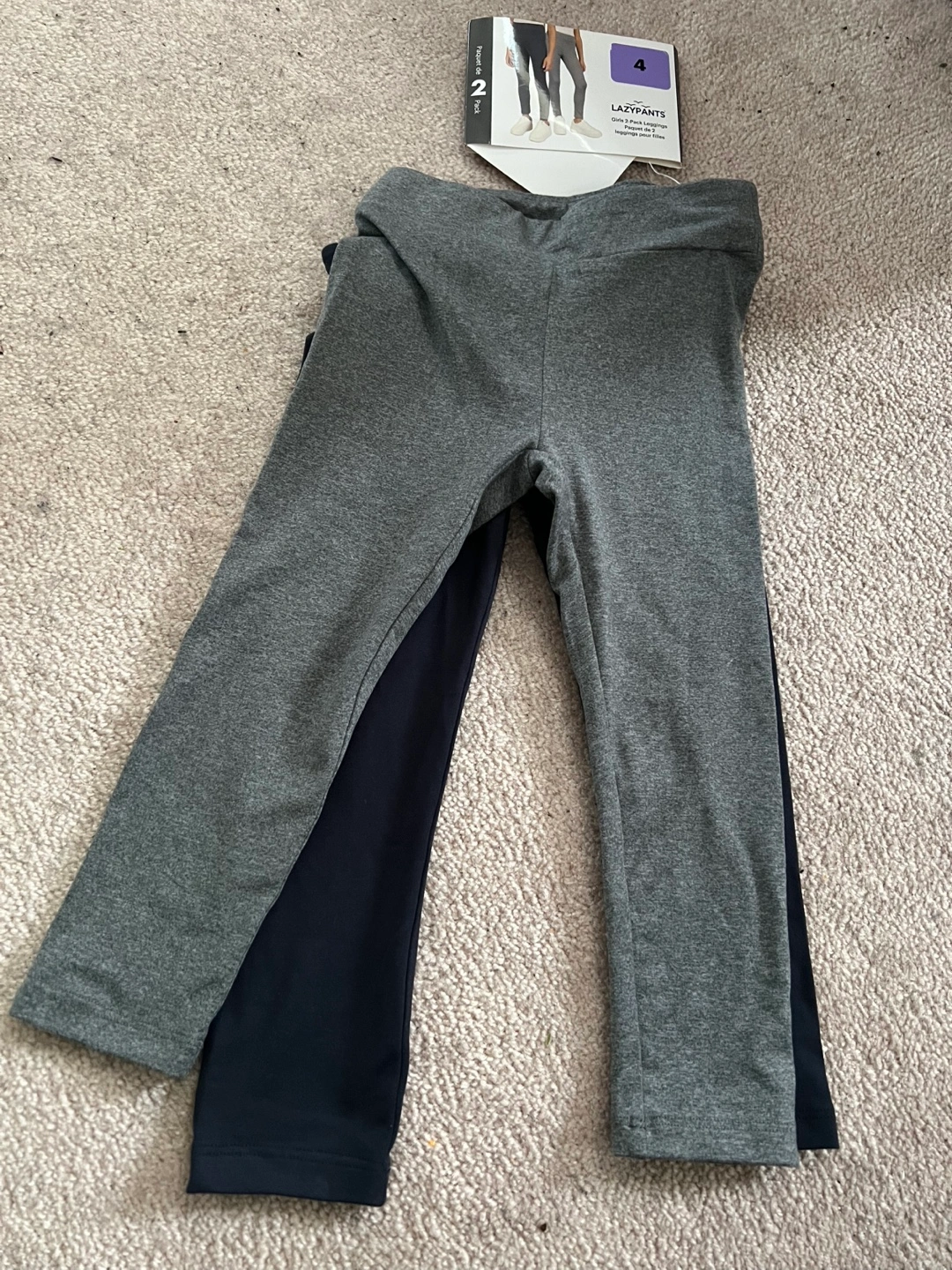One grey toddler pants and one navy blue toddler pants size 4. Has tags attached but kids outgrew this size before they could wear it. Porch pickup near Donald Cousens Parkway and Highway 7 in east Markham or can bring to work on certain days close to Weston and Steeles. $10 obo