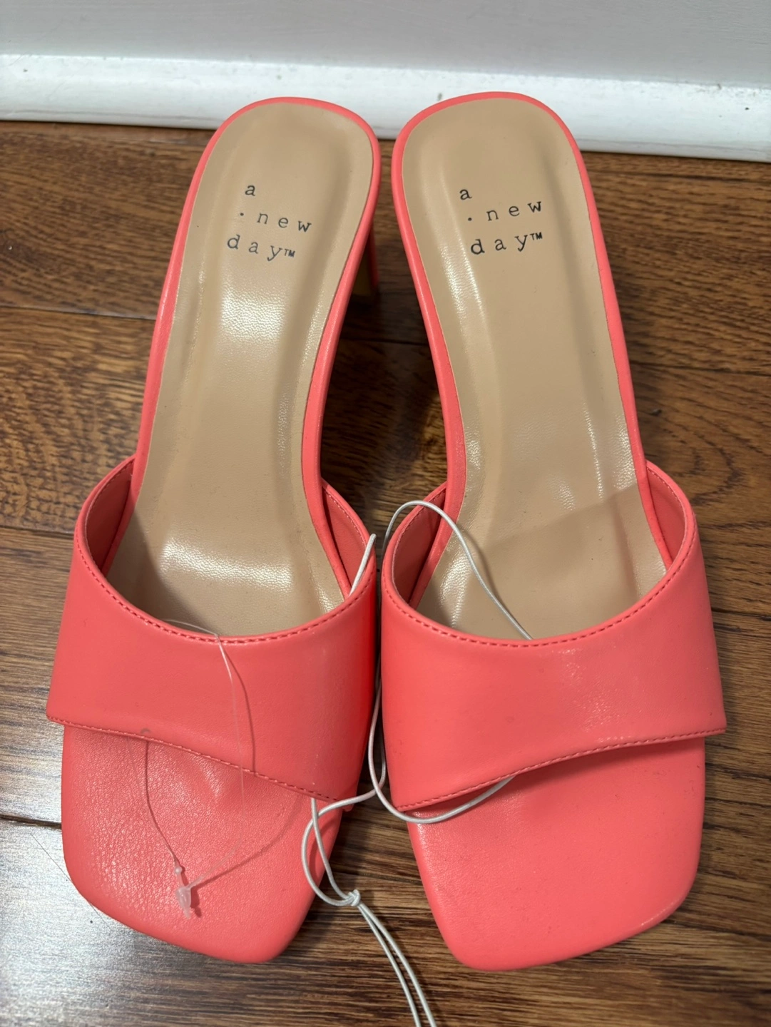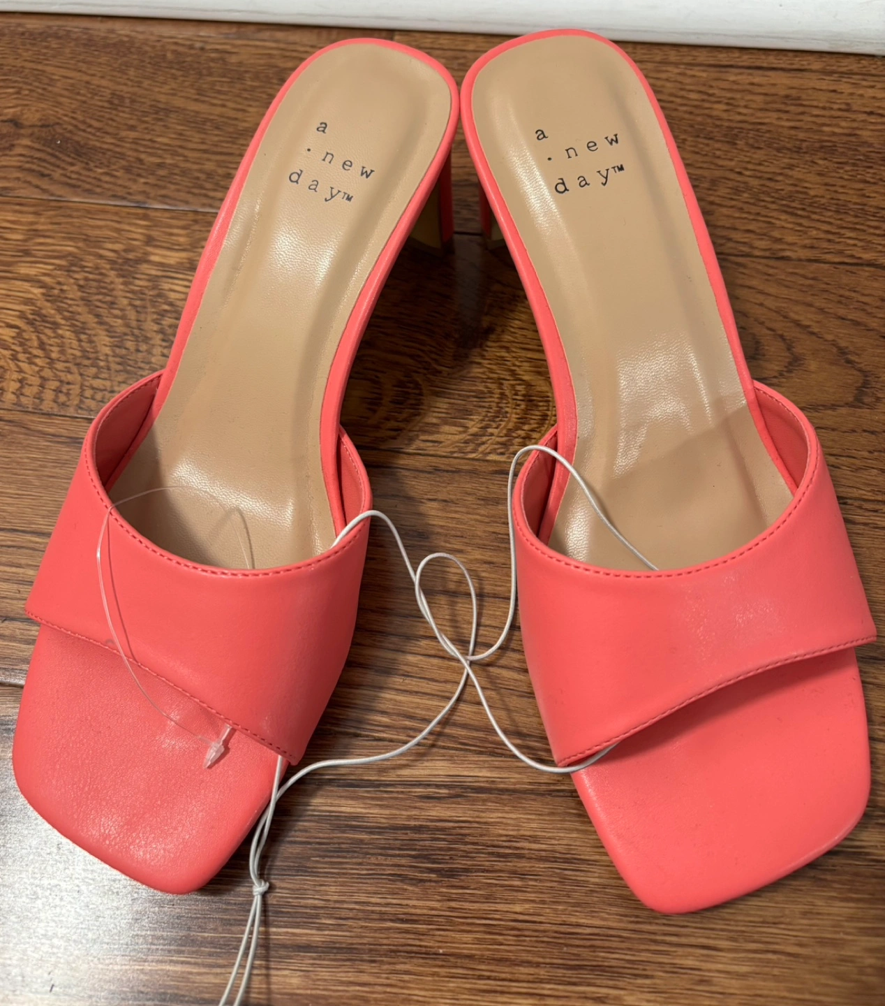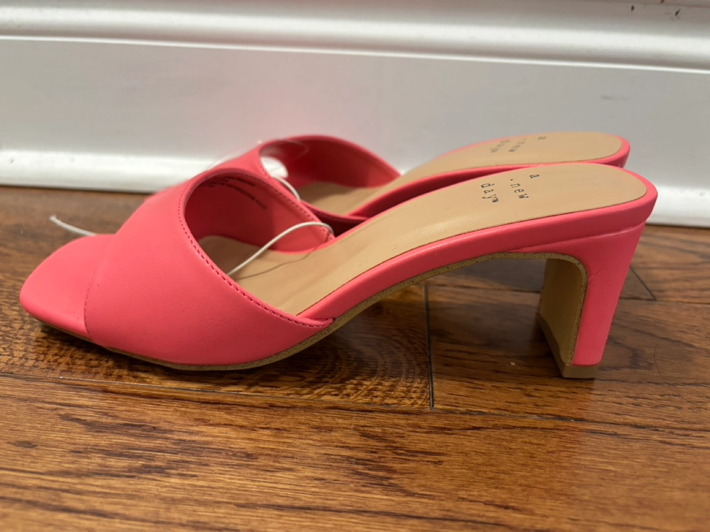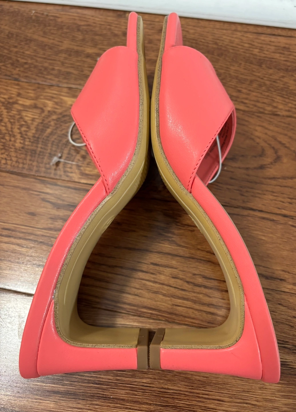 Brand new, never worn. Coral pink square toe mules. Block heel. Size 5 but fits up to Size 6.