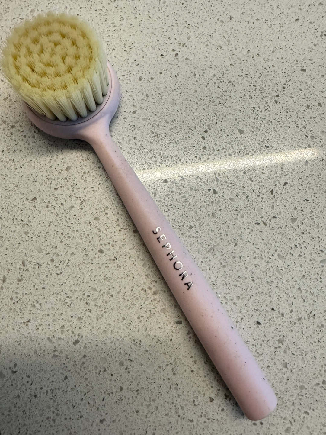 Pink body brush. Soft bristles. Long handle. Gently used.