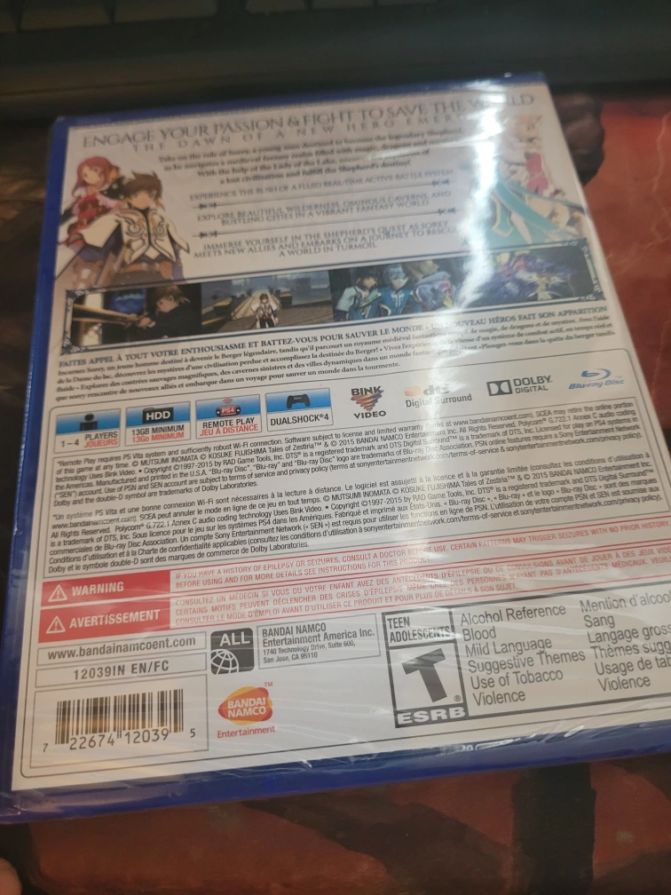 Brand new, factory sealed copy of Tales of Zestiria for PlayStation 4. Rated T for Teen by ESRB. Includes game disc and case. Great addition to any gamer's collection.