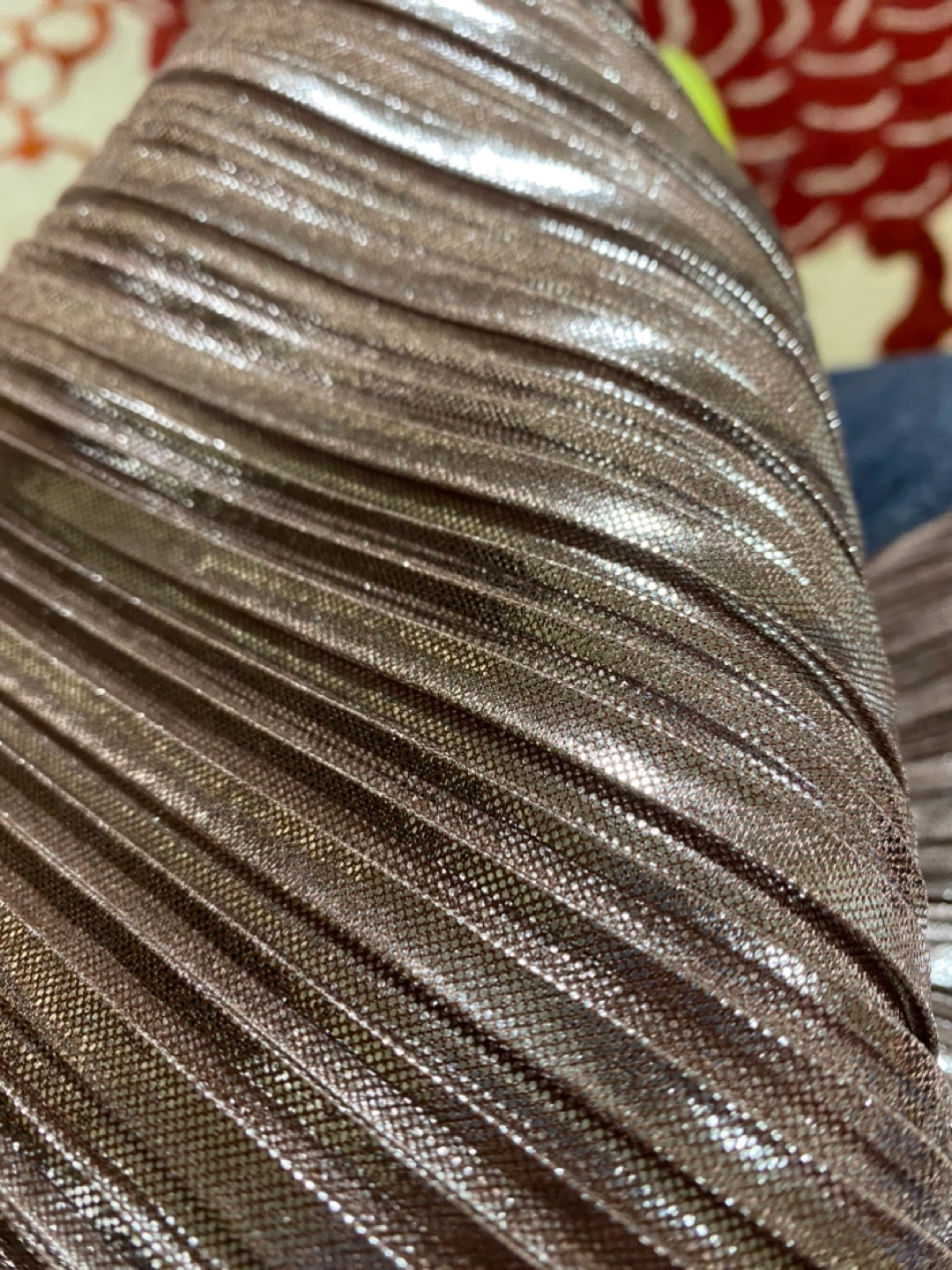 Metallic rose gold mini skirt. Pleated design. Size Medium in excellent condition. PICK UP PICKERING WHITES RD & STROUDS LANE