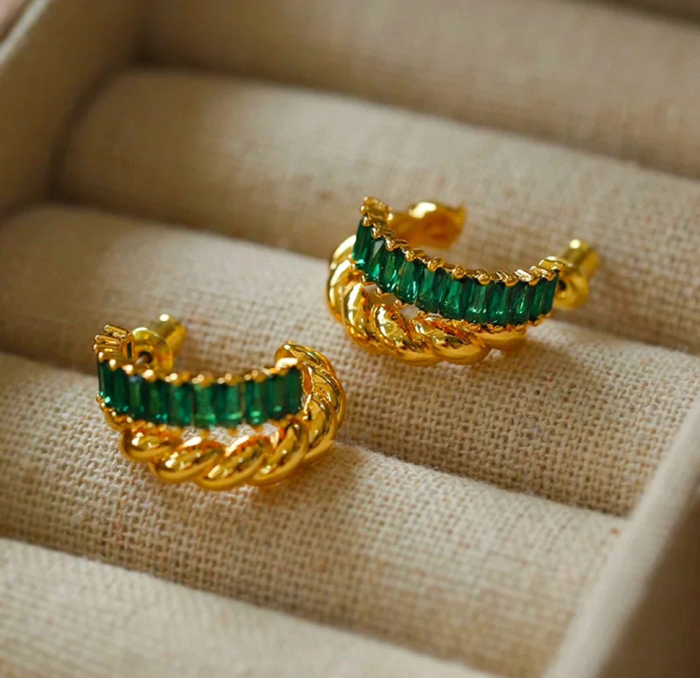 ‼️I delete my ad immediately after my item is sold, so if you see this ad, it’s available! You can go ahead with your questions ! ❌ I won’t reply any availability questions Beautiful pair of gold huggie earrings. Features twisted gold band and emerald green baguette crystals. Perfect for adding a touch of glamour to any outfit. Only tried on at home Material: 18K gold plated on brass, 925 silver on post, Zircon Measurement : approx. 2CM or 0.8 inches ‼️Pick up Yonge & Finch area ONLY!!!! ( please don’t message me if you can’t come for pick up! No delivery or any meet ups! Will provide pick up address after pick up time scheduled ❌ no trade ❌ Please check out my other listing ‼️I cross post on other platforms as well, so first come first get , unless deposit received